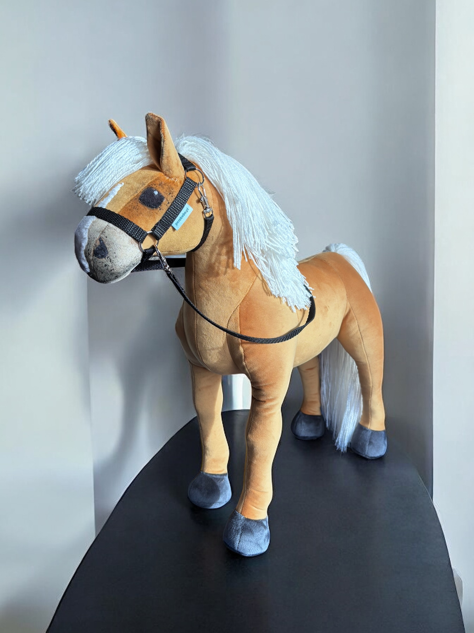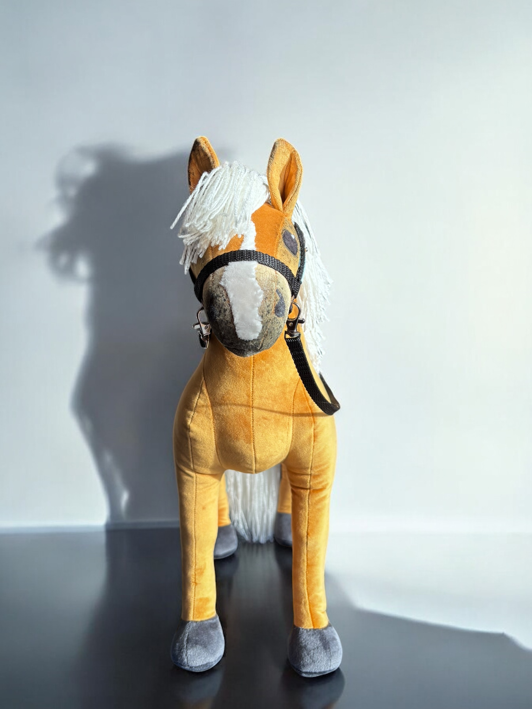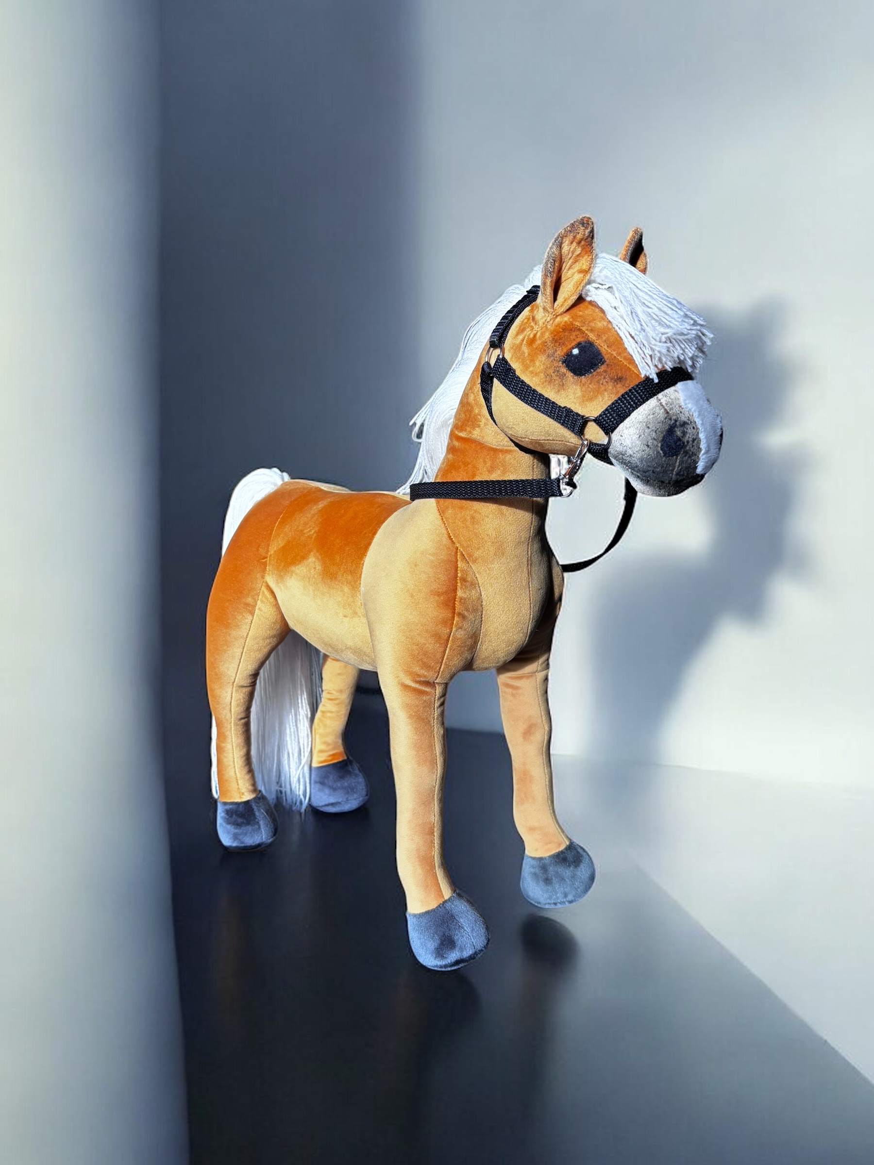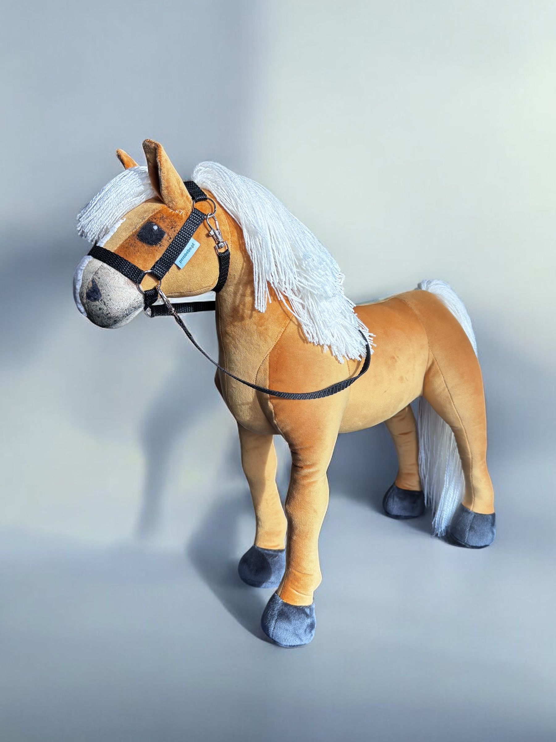 Konik, wykonany z miękkiej, przyjemnej w dotyku tkaniny, charakteryzuje się stabilnymi nogami. Włosy konika są z włóczki, tworząc bujną grzywą co sprawia jeszcze większą frajdę przy zabawie ,można wyplatać piękne fryzury, dodaje mu jeszcze większego uroku.