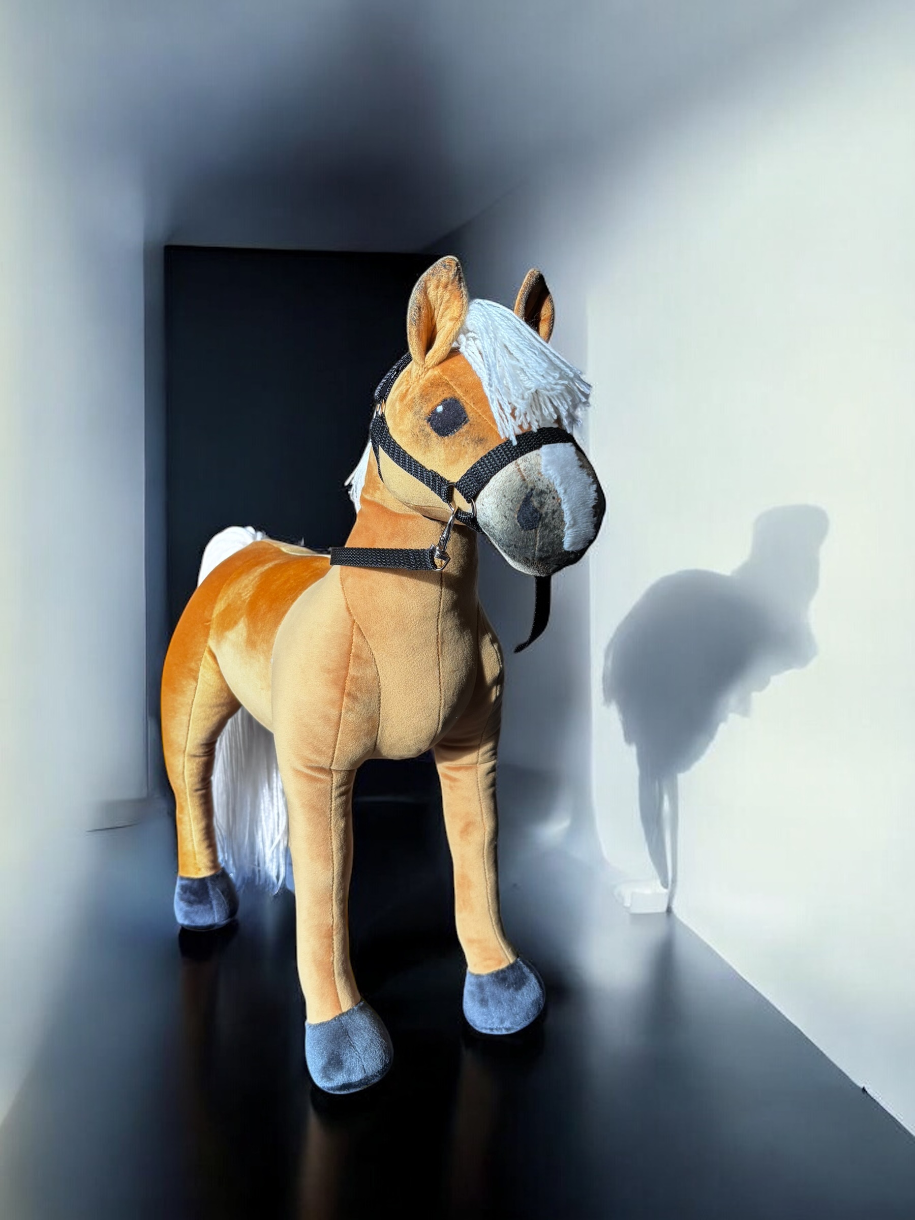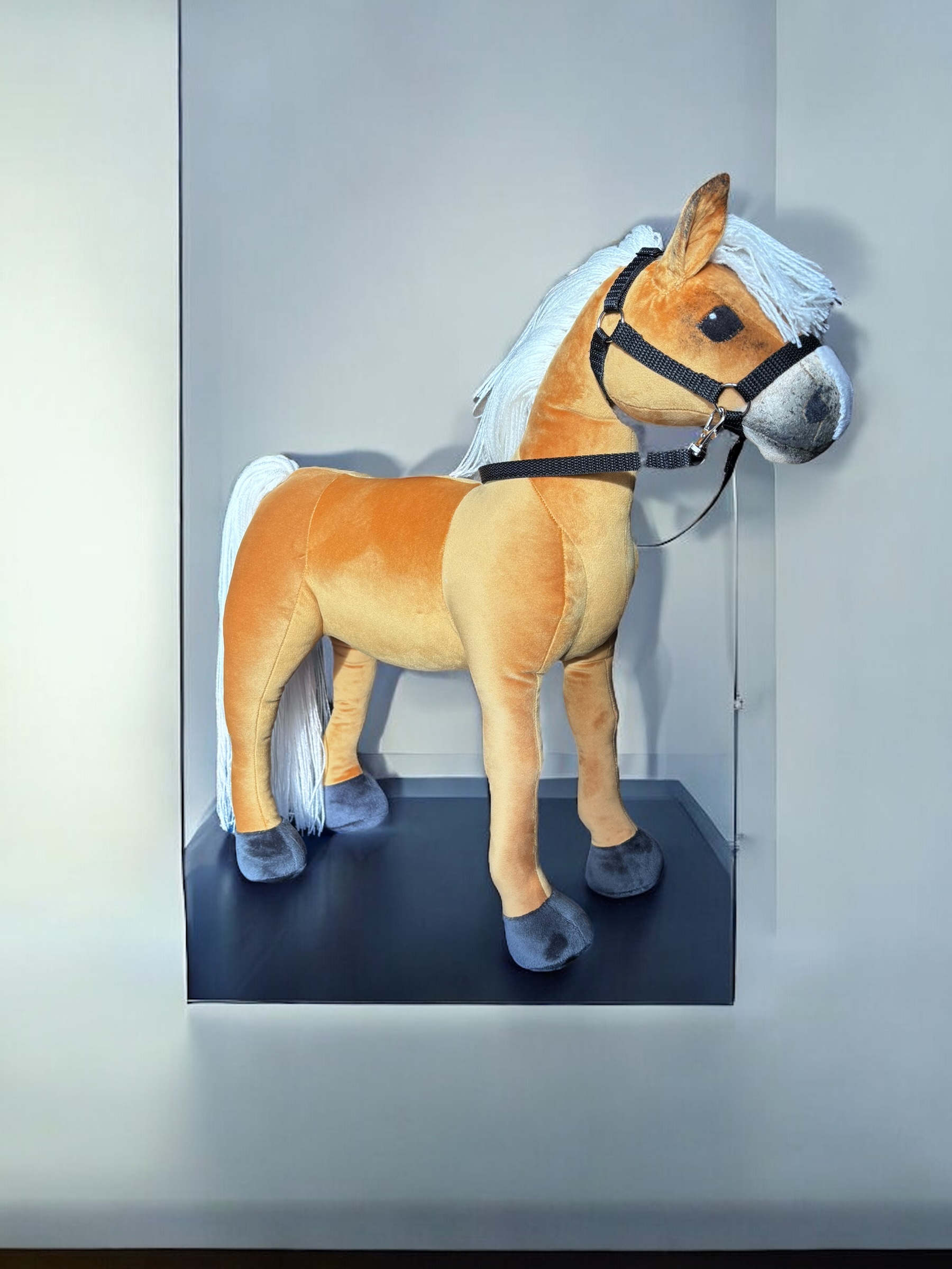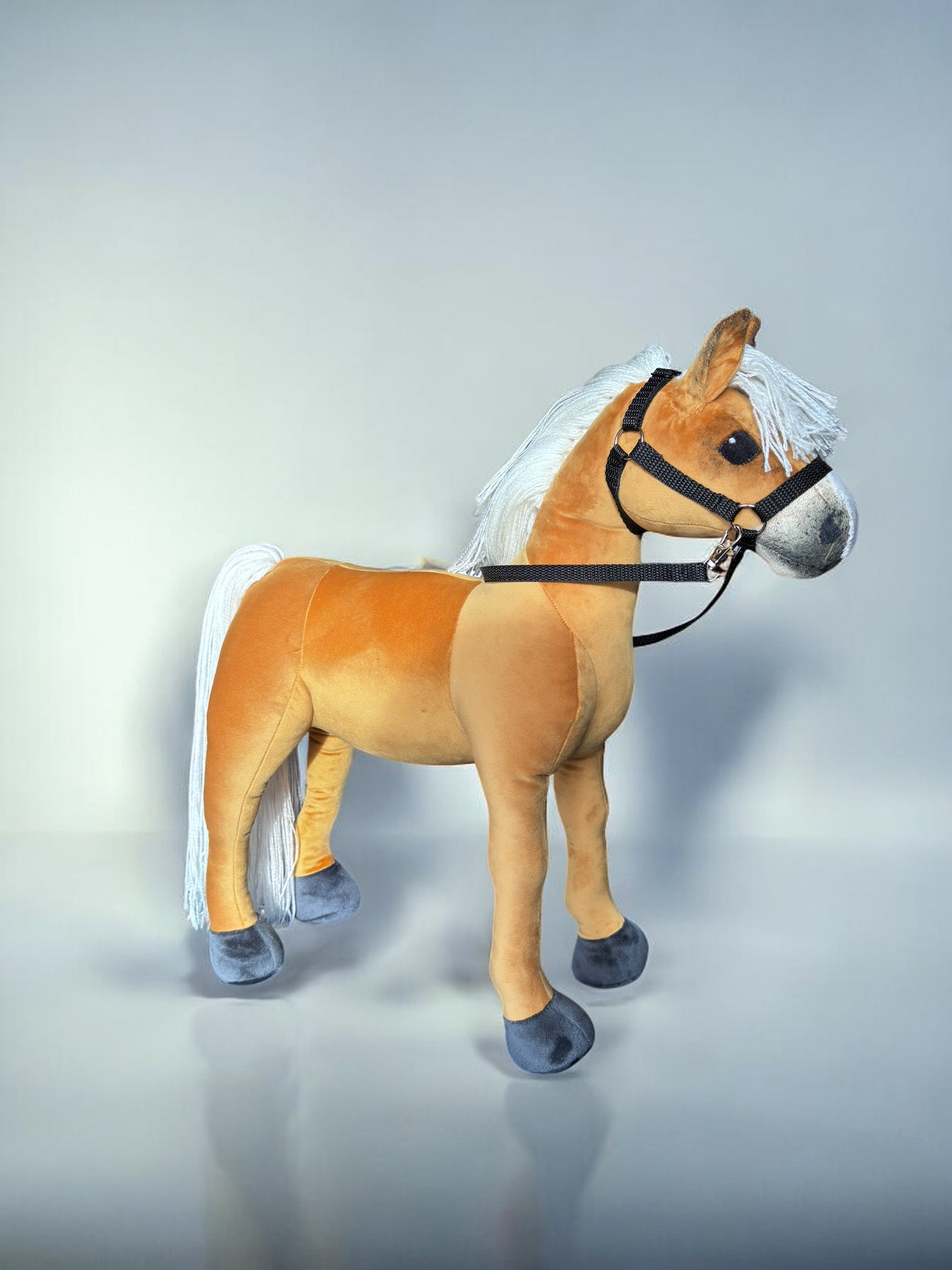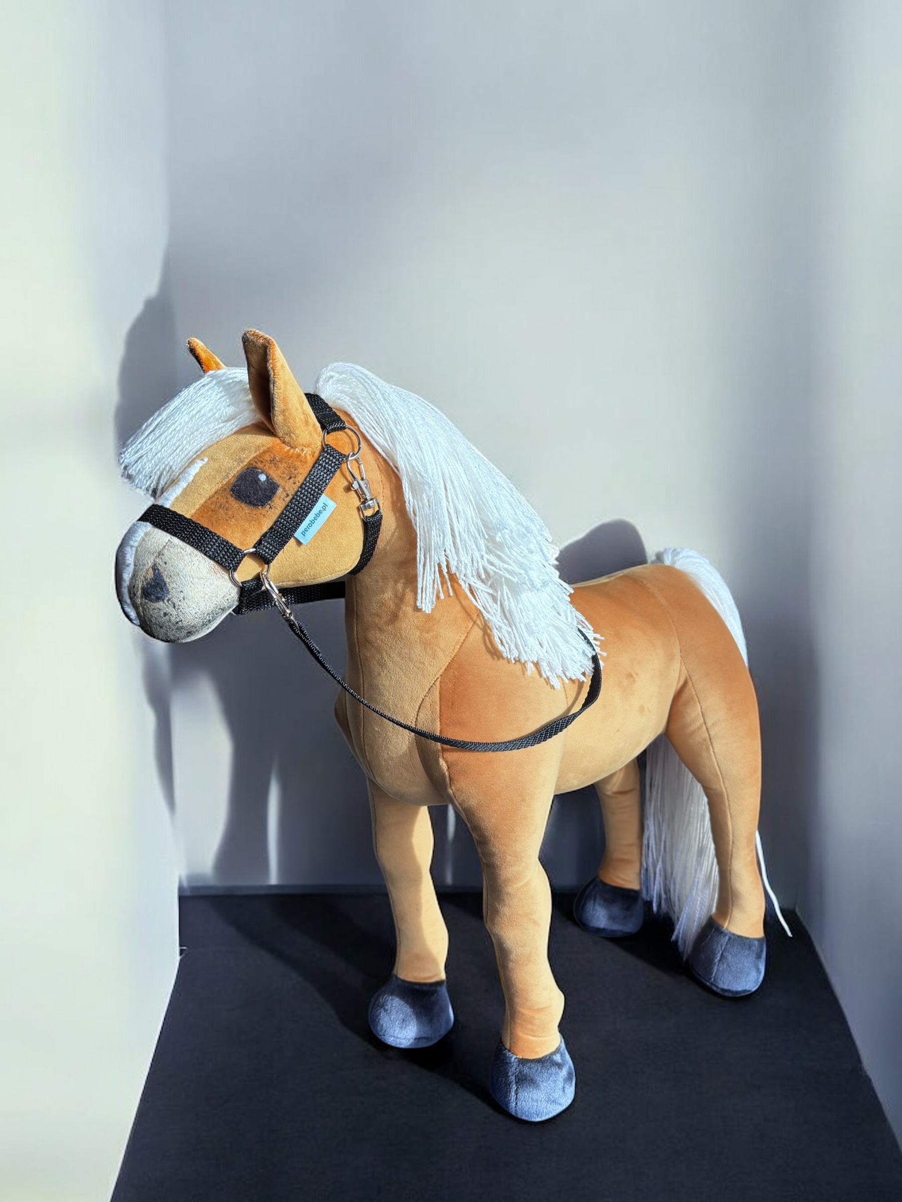Konik, wykonany z miękkiej, przyjemnej w dotyku tkaniny, charakteryzuje się stabilnymi nogami. Włosy konika są z włóczki, tworząc bujną grzywą co sprawia jeszcze większą frajdę przy zabawie ,można wyplatać piękne fryzury, dodaje mu jeszcze większego uroku.