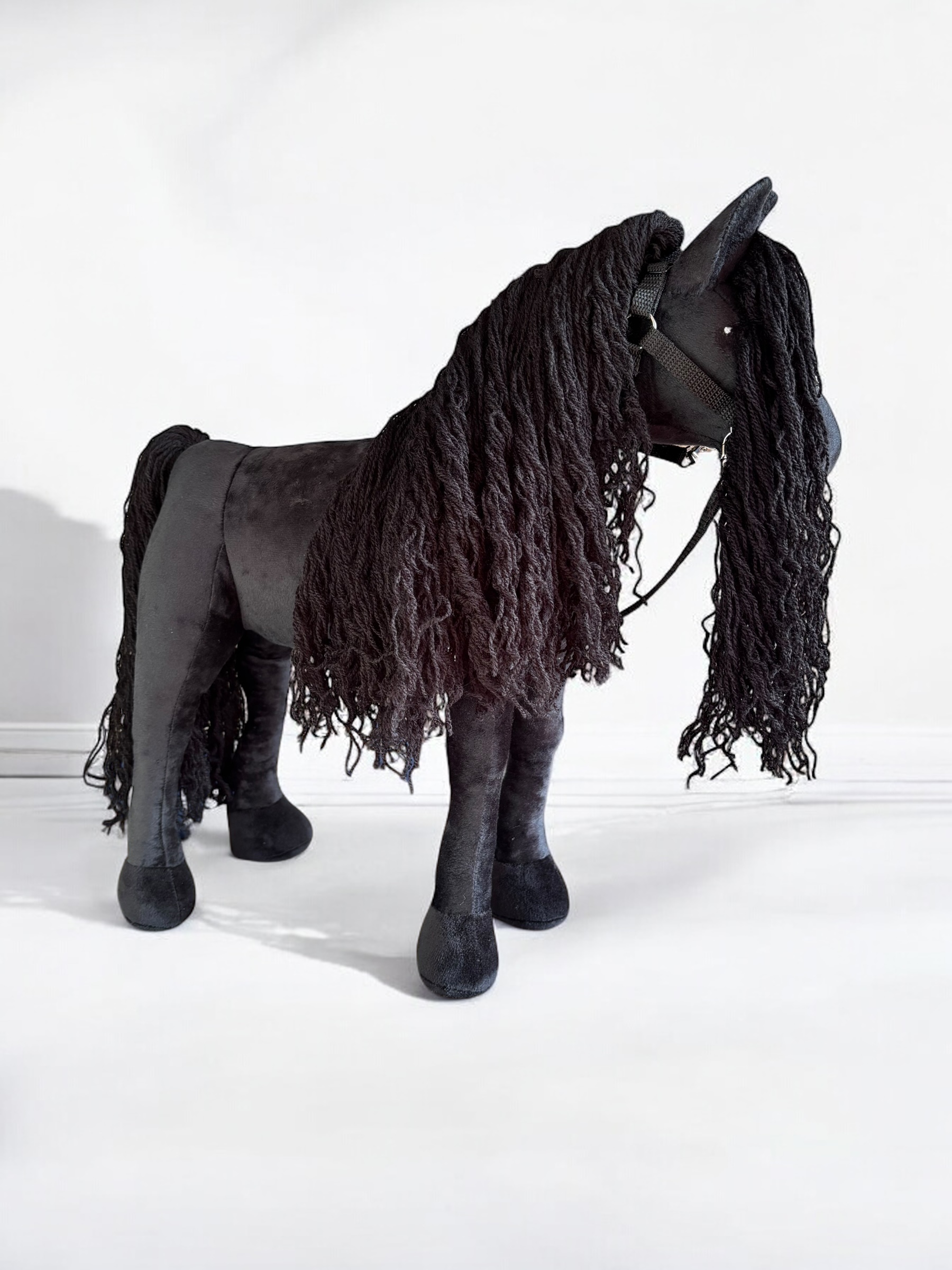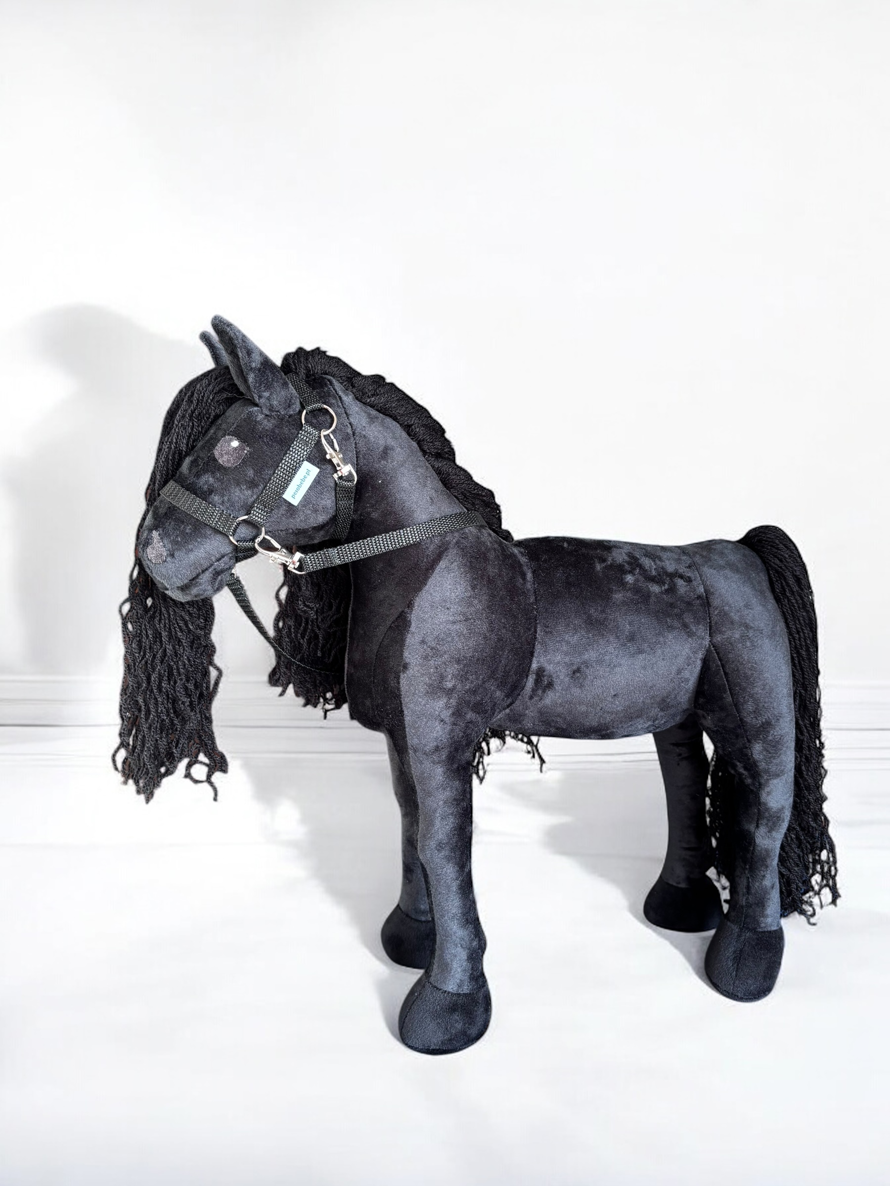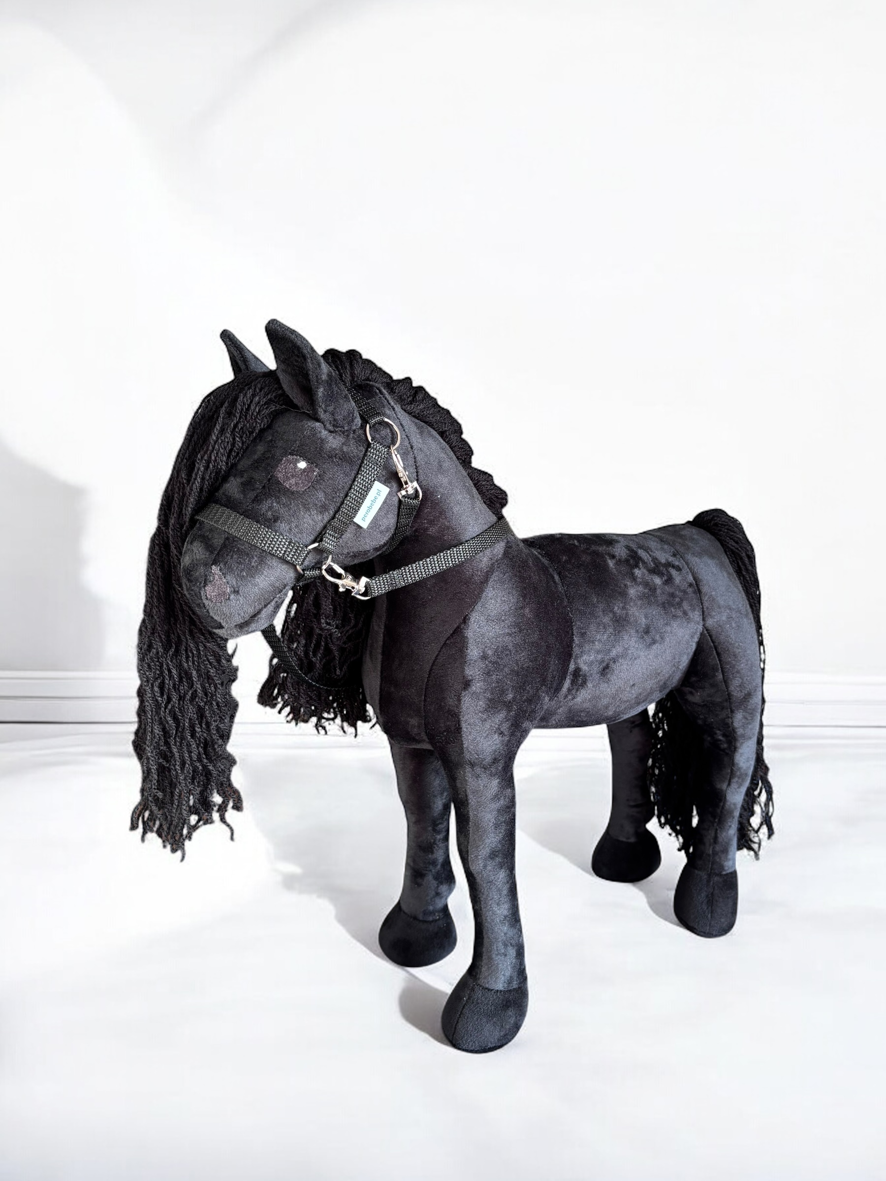 Konik, wykonany z miękkiej, przyjemnej w dotyku tkaniny, charakteryzuje się stabilnymi nogami. Włosy konika są z włóczki, tworząc bujną grzywą co sprawia jeszcze większą frajdę przy zabawie ,można wyplatać piękne fryzury, dodaje mu jeszcze większego uroku.