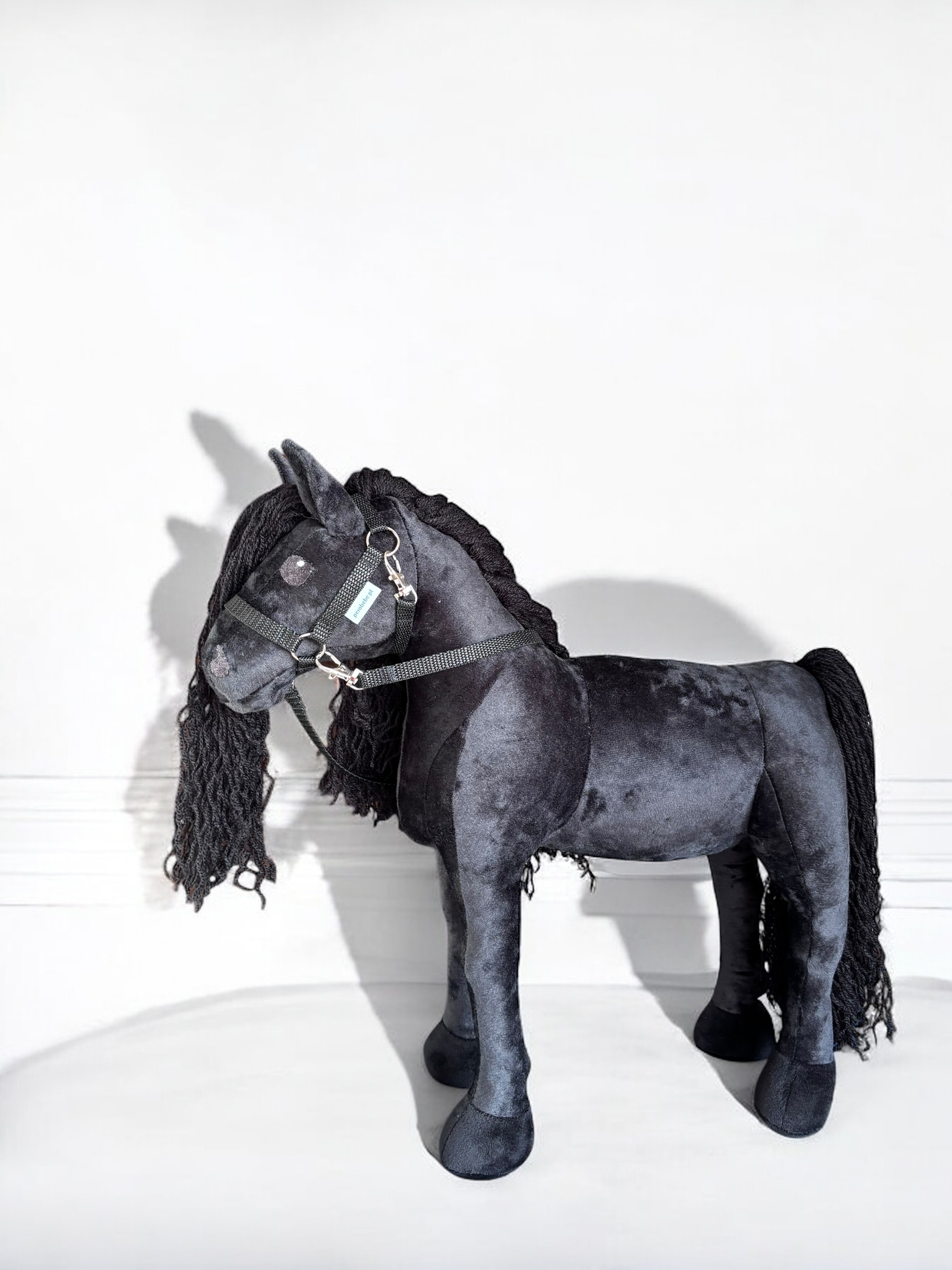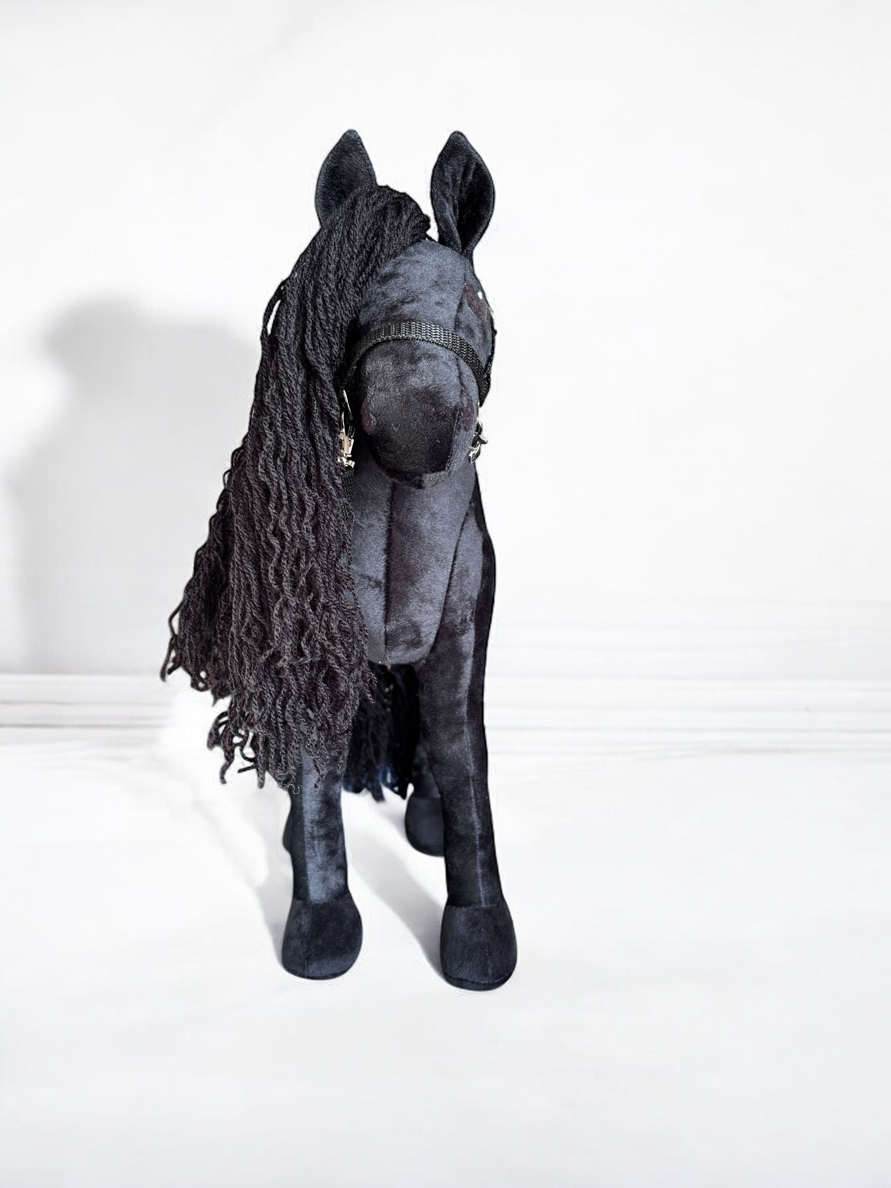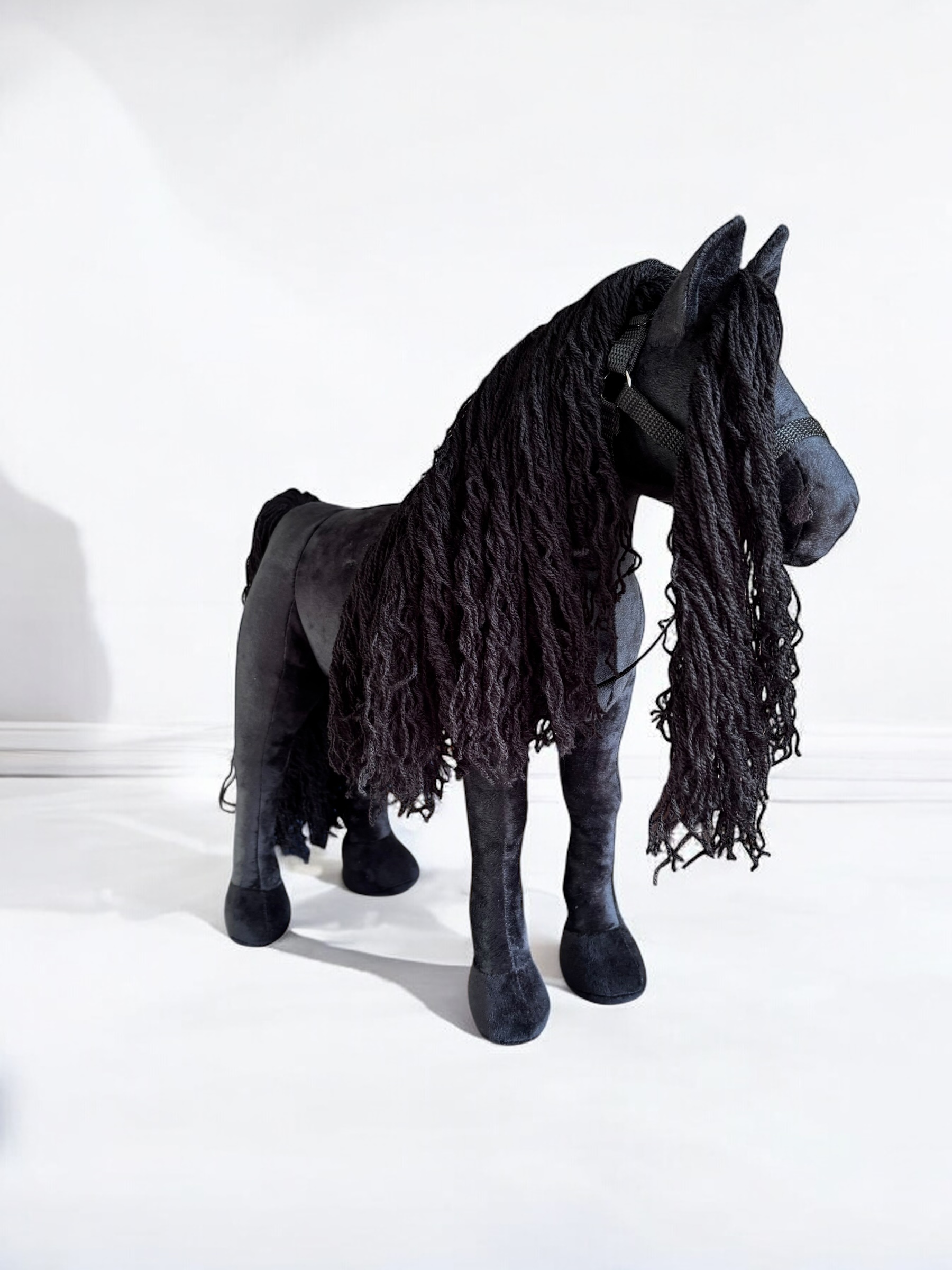 Konik, wykonany z miękkiej, przyjemnej w dotyku tkaniny, charakteryzuje się stabilnymi nogami. Włosy konika są z włóczki, tworząc bujną grzywą co sprawia jeszcze większą frajdę przy zabawie ,można wyplatać piękne fryzury, dodaje mu jeszcze większego uroku.