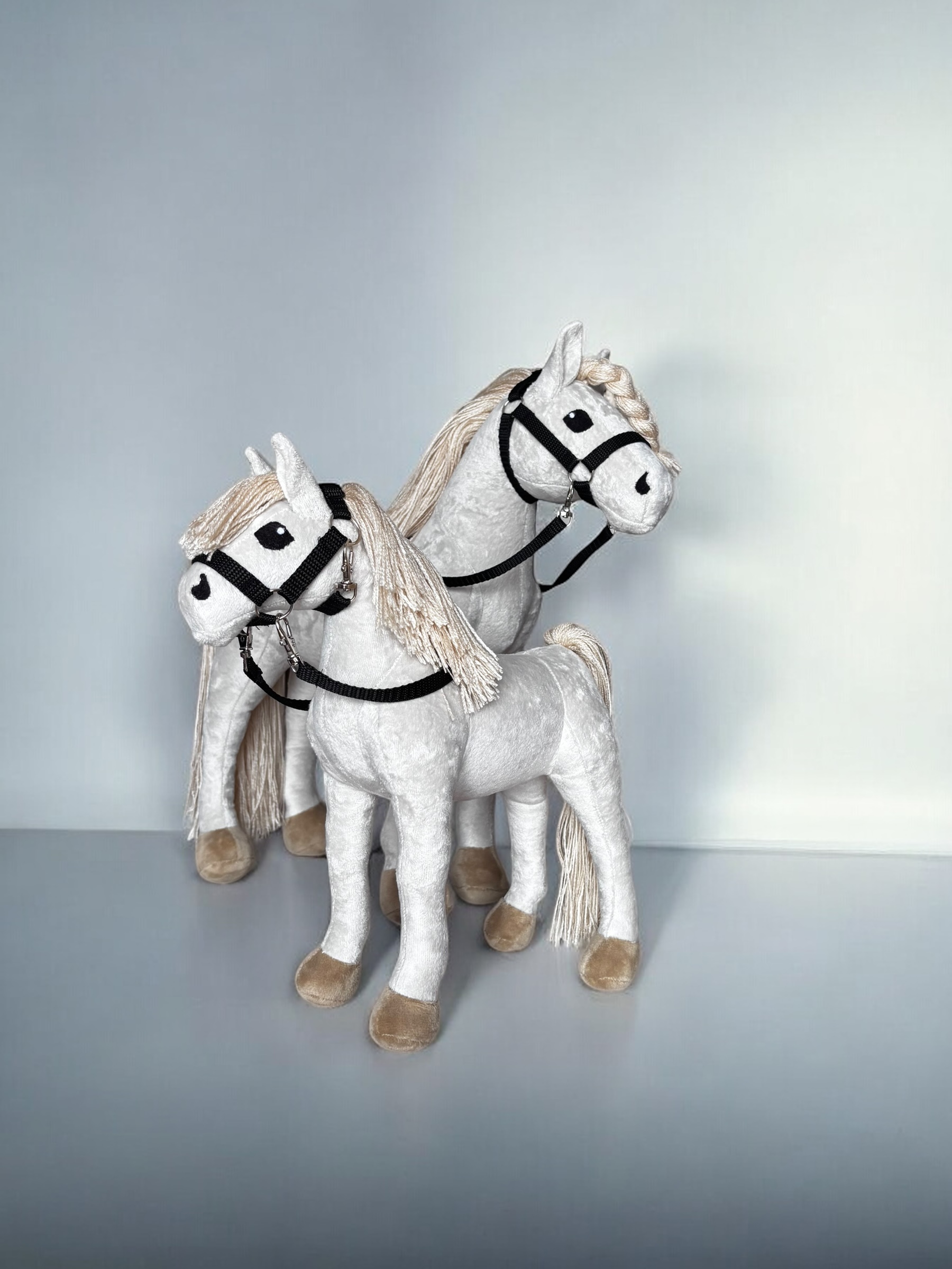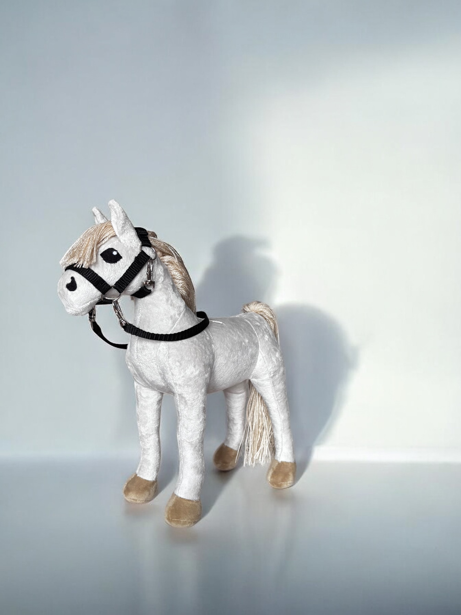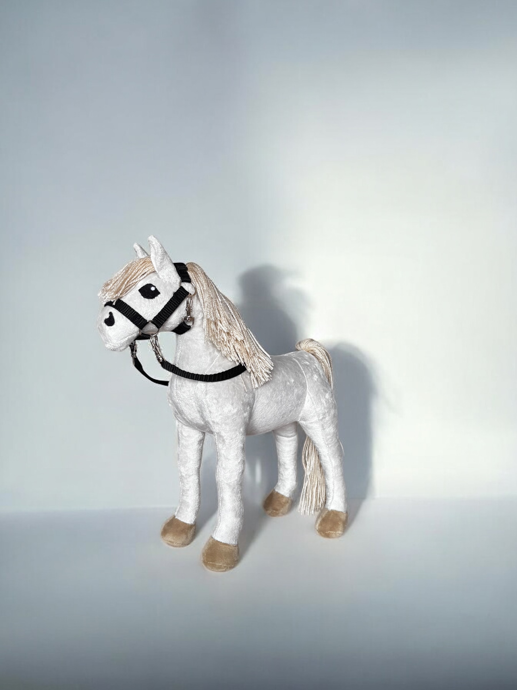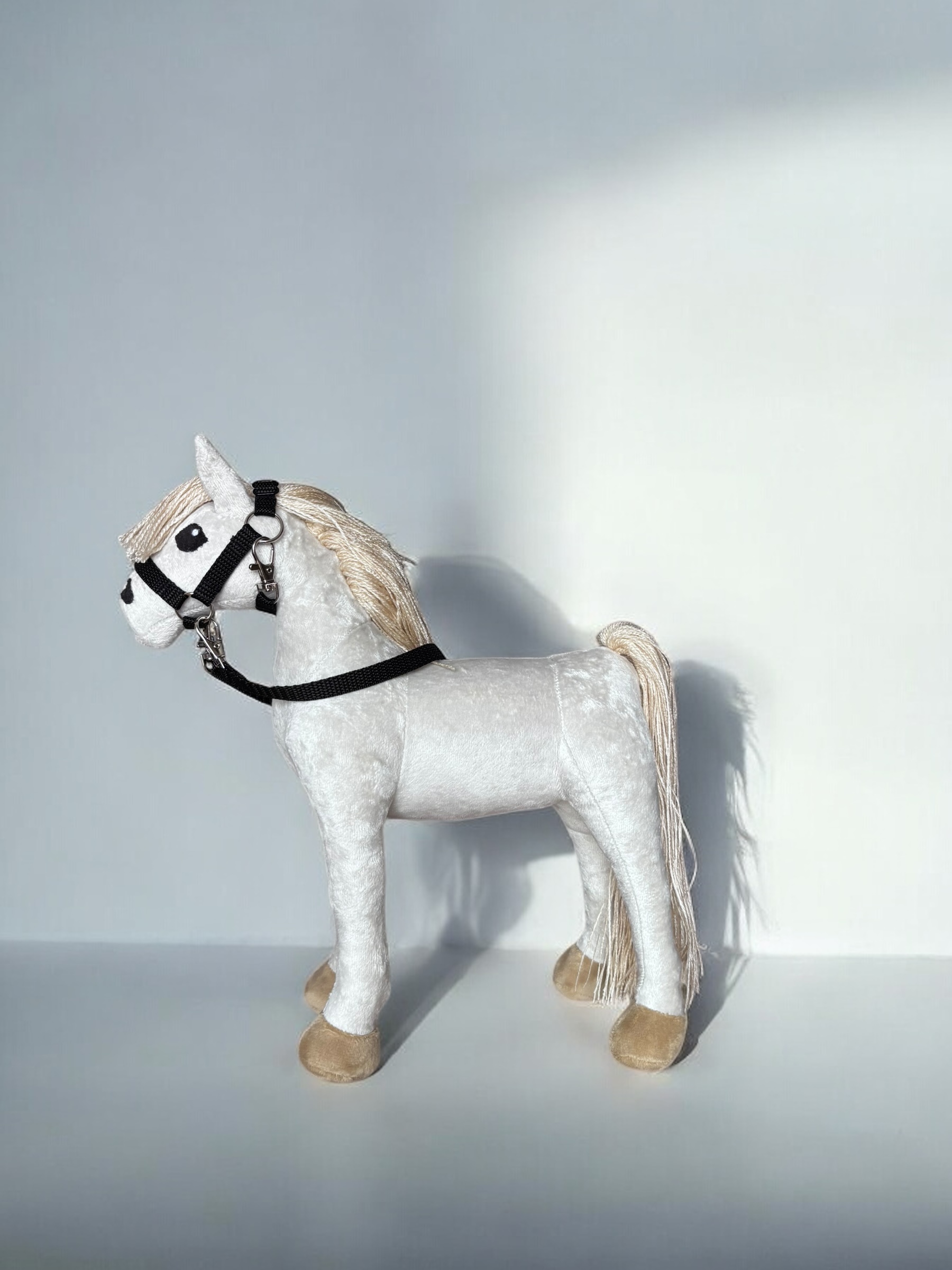 Konik, wykonany z miękkiej, przyjemnej w dotyku tkaniny, charakteryzuje się stabilnymi nogami. Włosy konika są z włóczki, tworząc bujną grzywą co sprawia jeszcze większą frajdę przy zabawie ,można wyplatać piękne fryzury, dodaje mu jeszcze większego uroku.