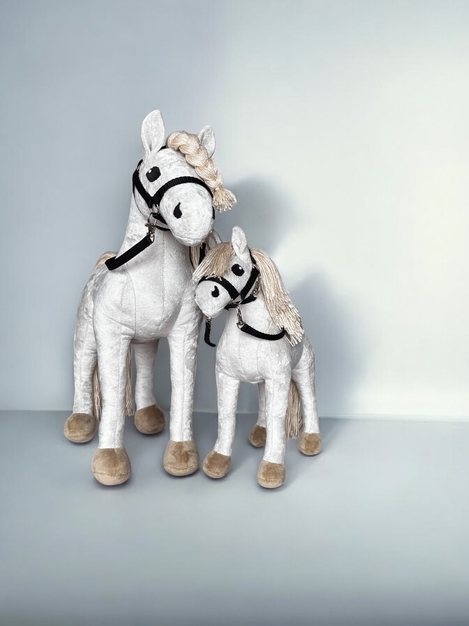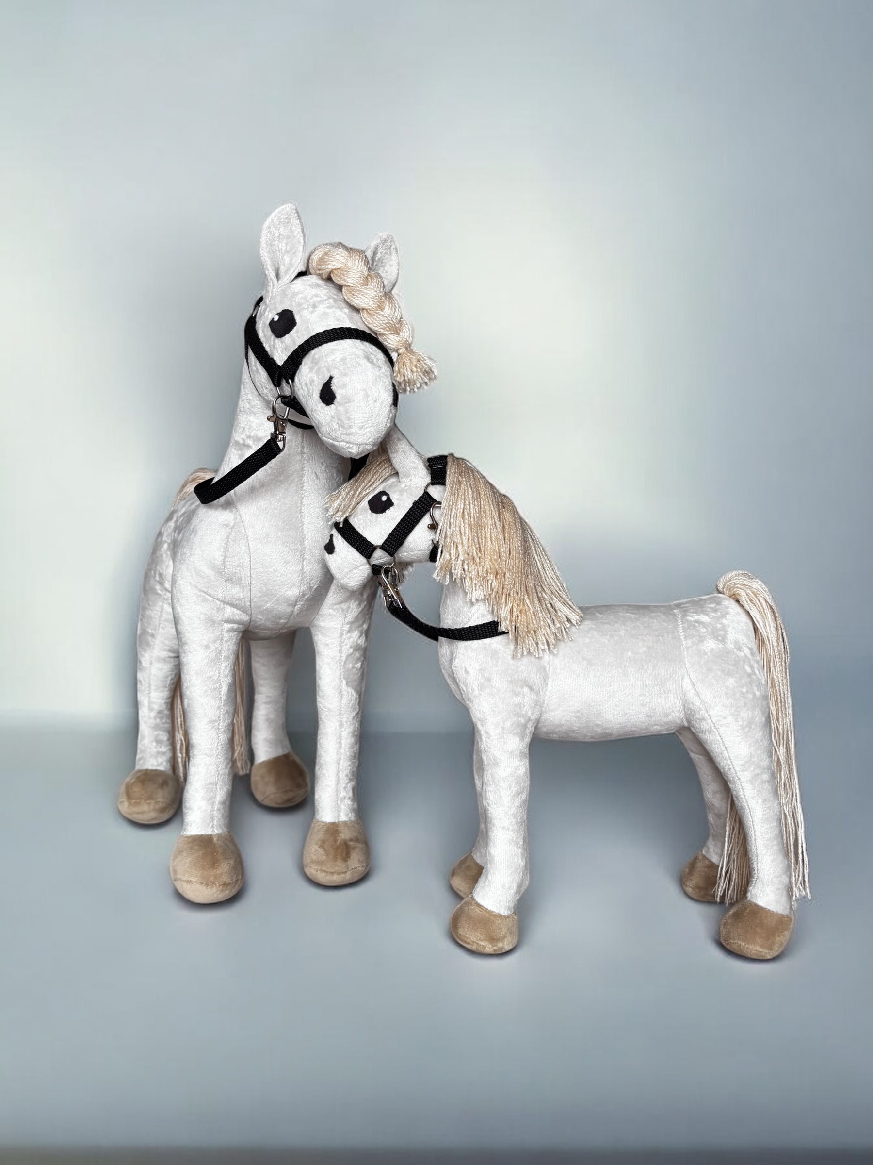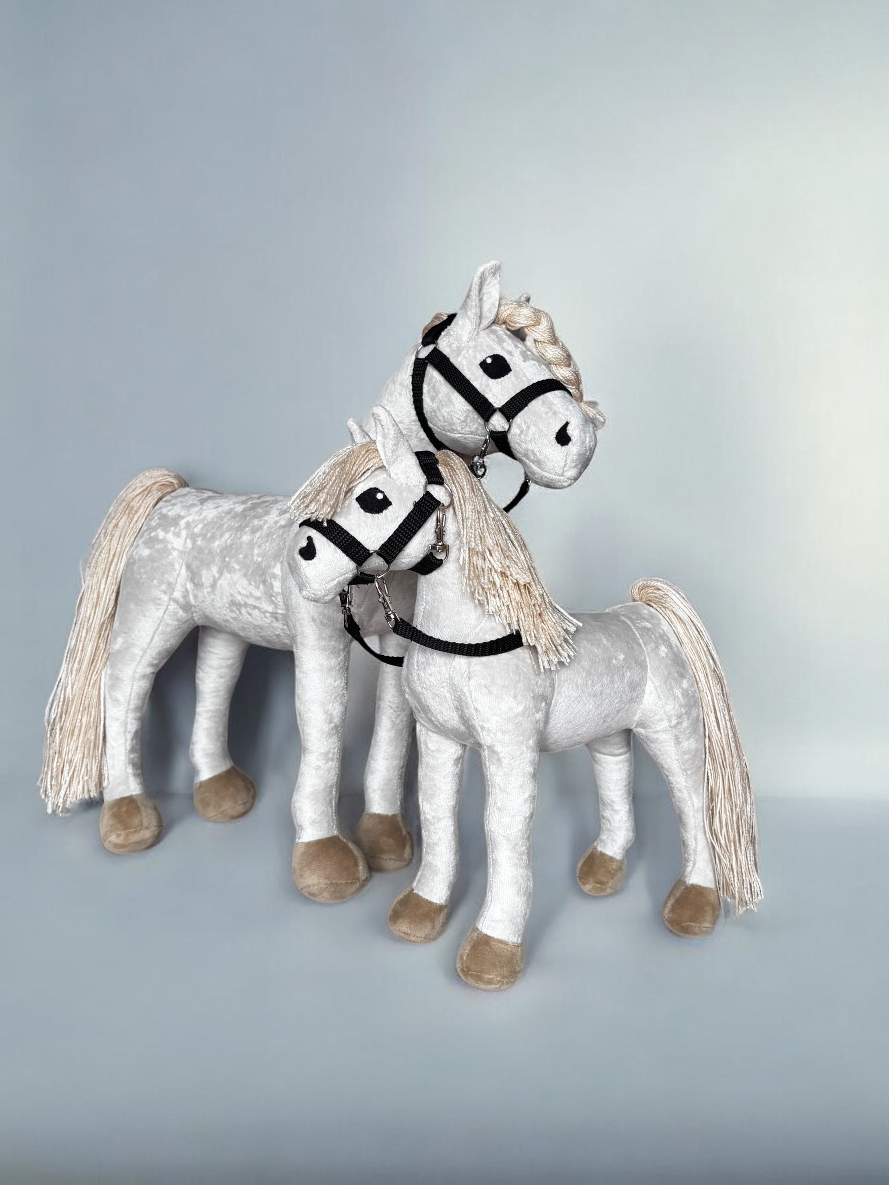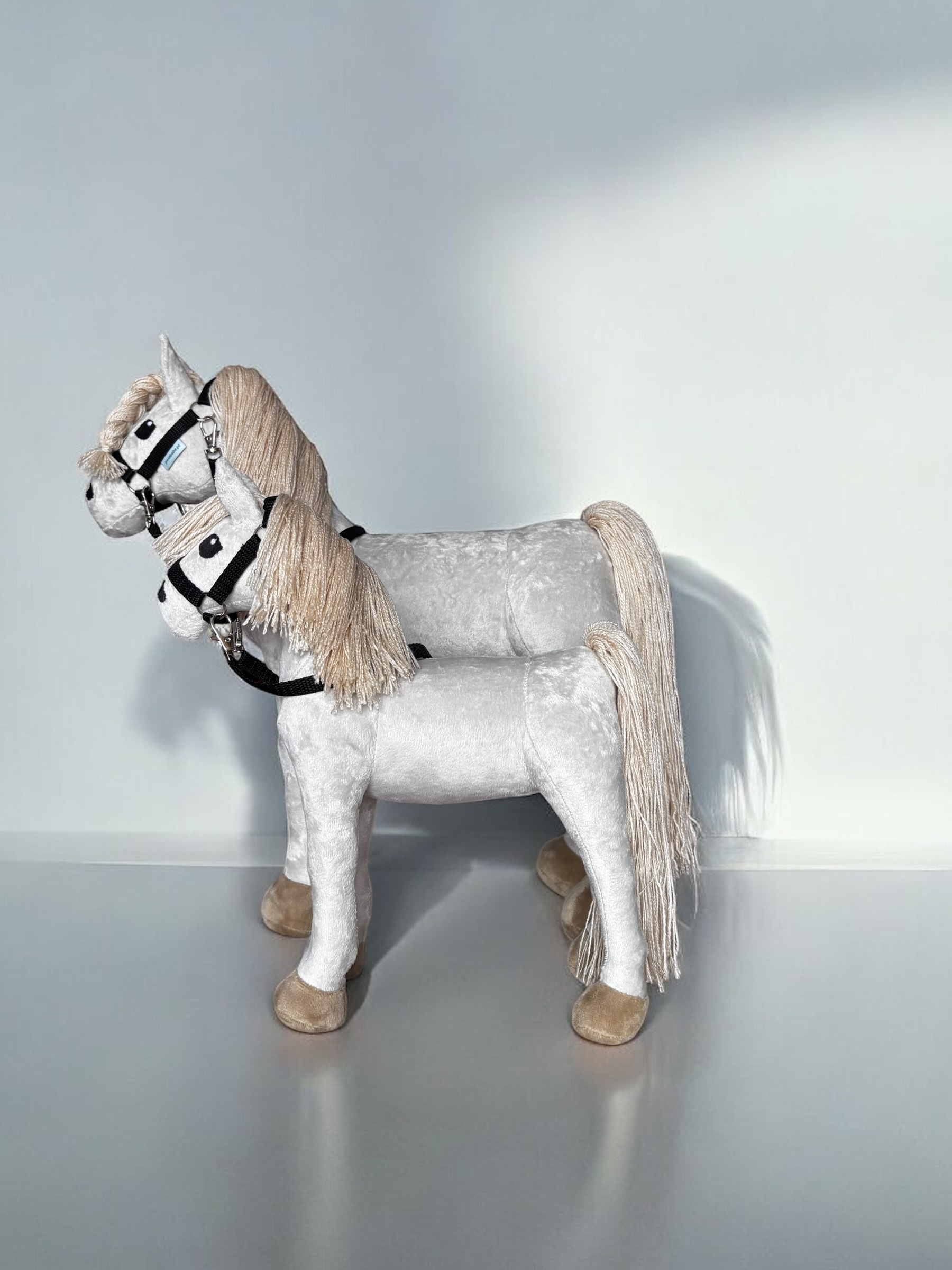 Konik, wykonany z miękkiej, przyjemnej w dotyku tkaniny, charakteryzuje się stabilnymi nogami. Włosy konika są z włóczki, tworząc bujną grzywą co sprawia jeszcze większą frajdę przy zabawie ,można wyplatać piękne fryzury, dodaje mu jeszcze większego uroku.