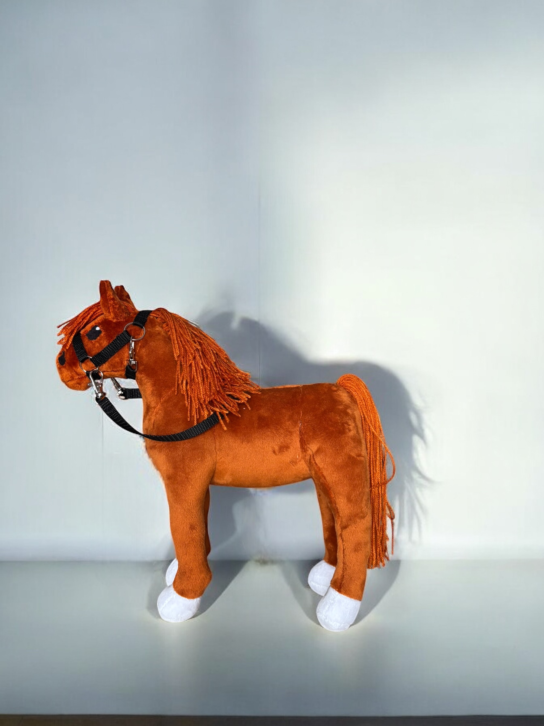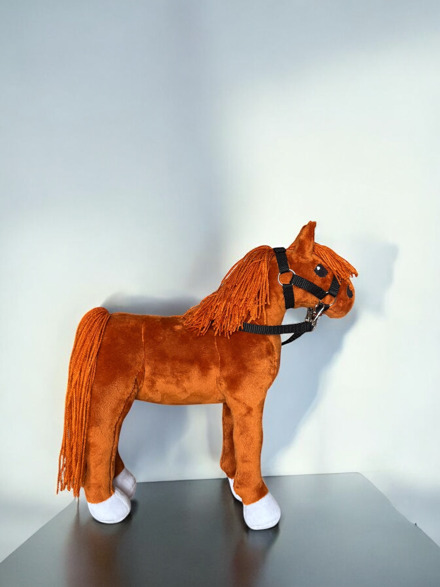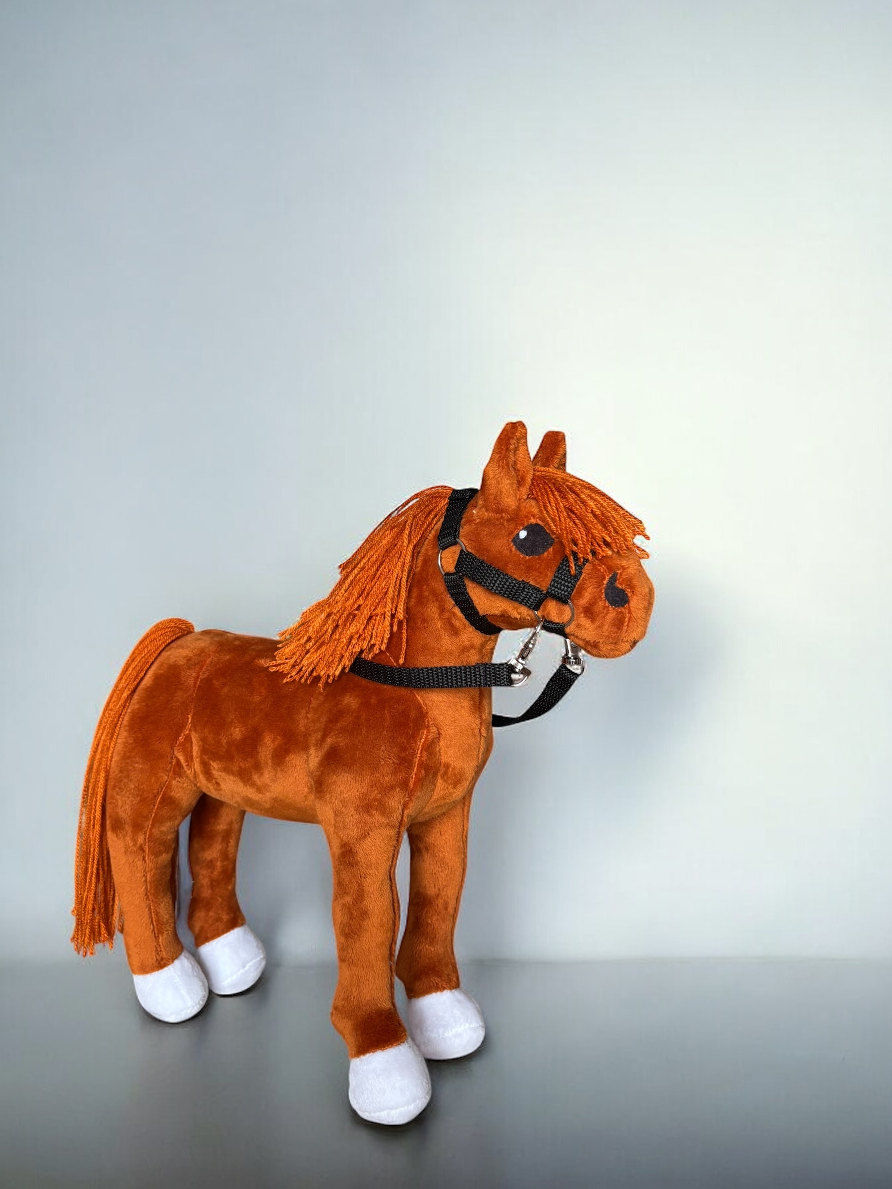 Konik, wykonany z miękkiej, przyjemnej w dotyku tkaniny, charakteryzuje się stabilnymi nogami. Włosy konika są z włóczki, tworząc bujną grzywą co sprawia jeszcze większą frajdę przy zabawie ,można wyplatać piękne fryzury, dodaje mu jeszcze większego uroku.