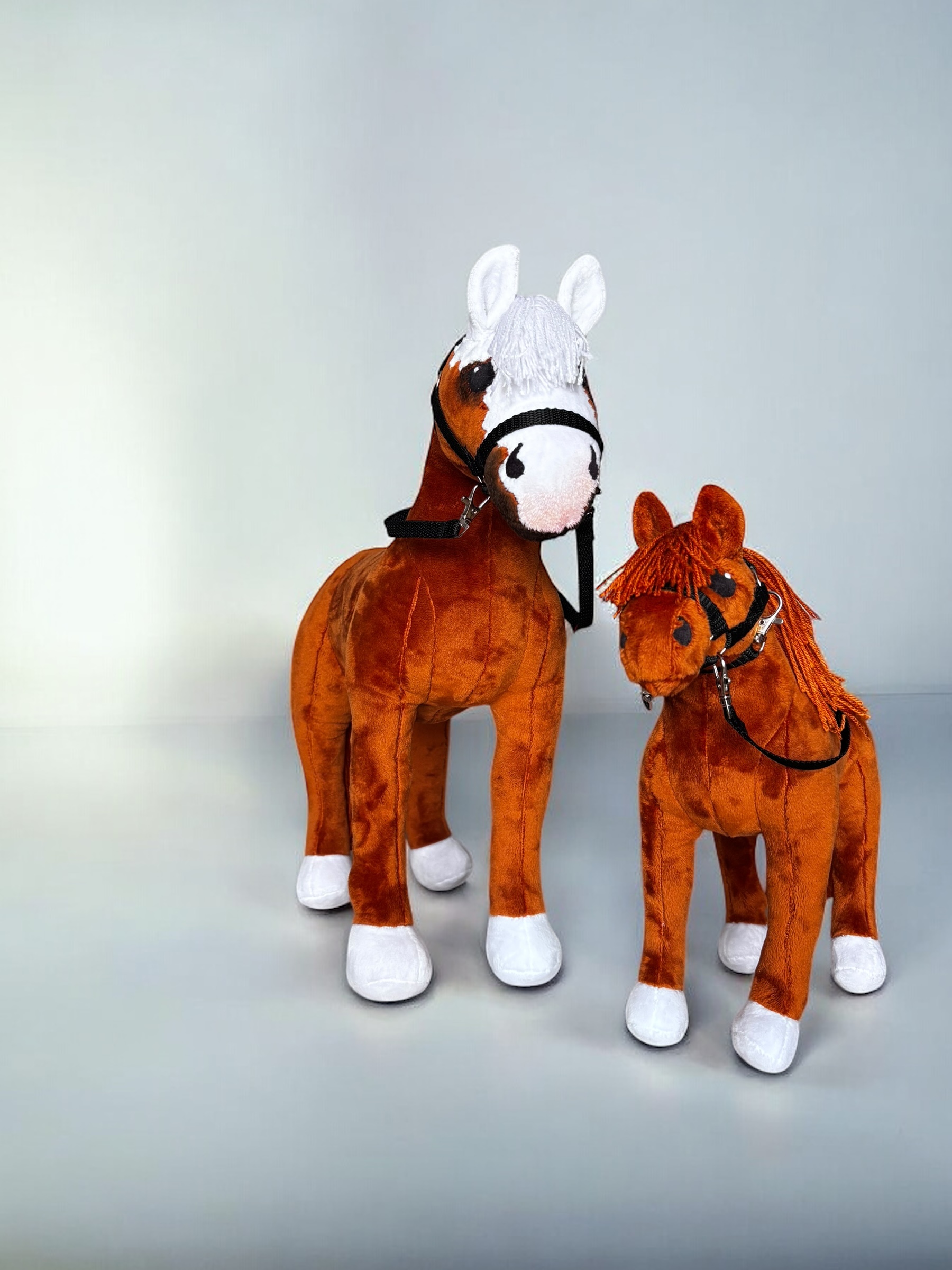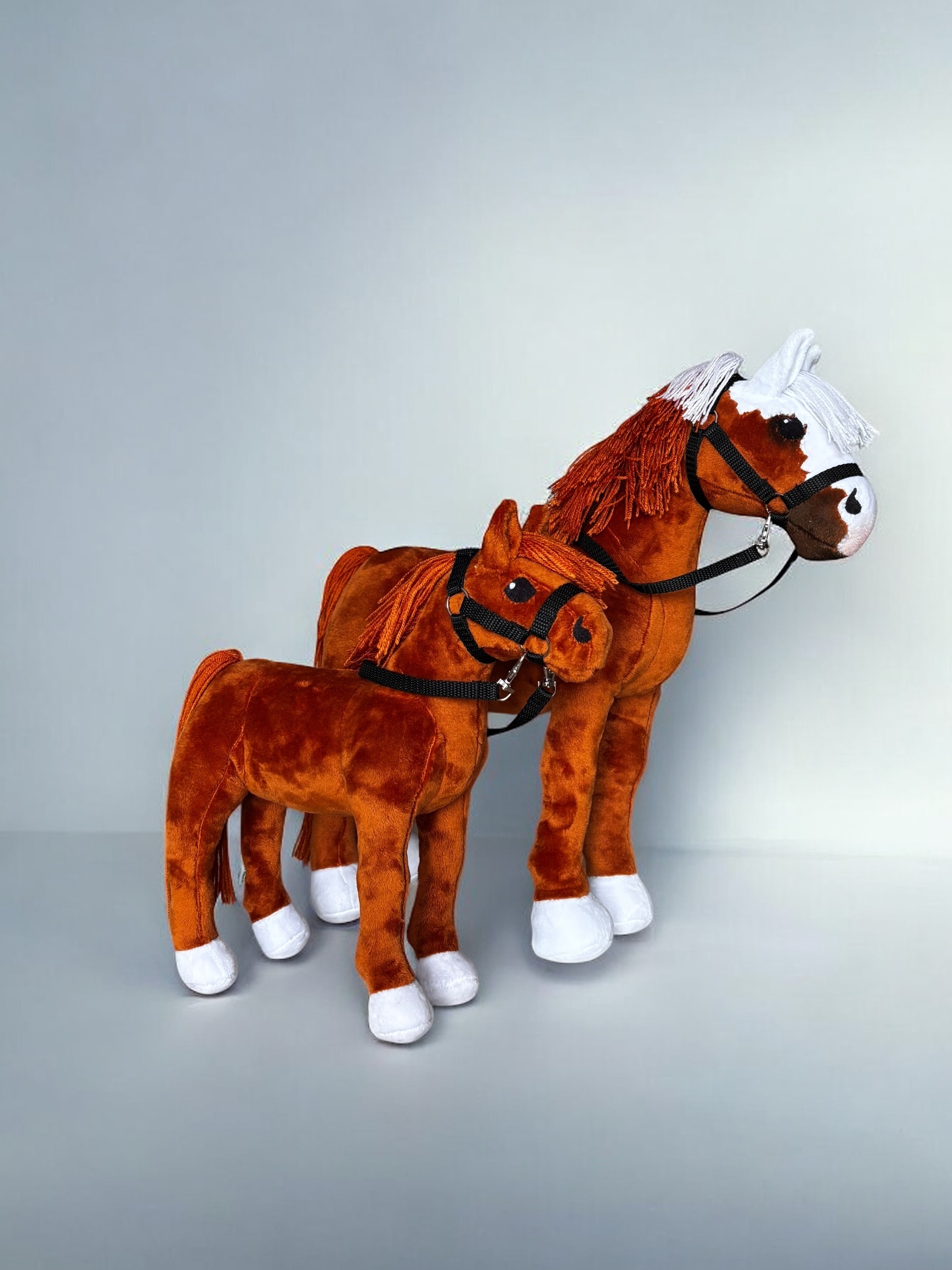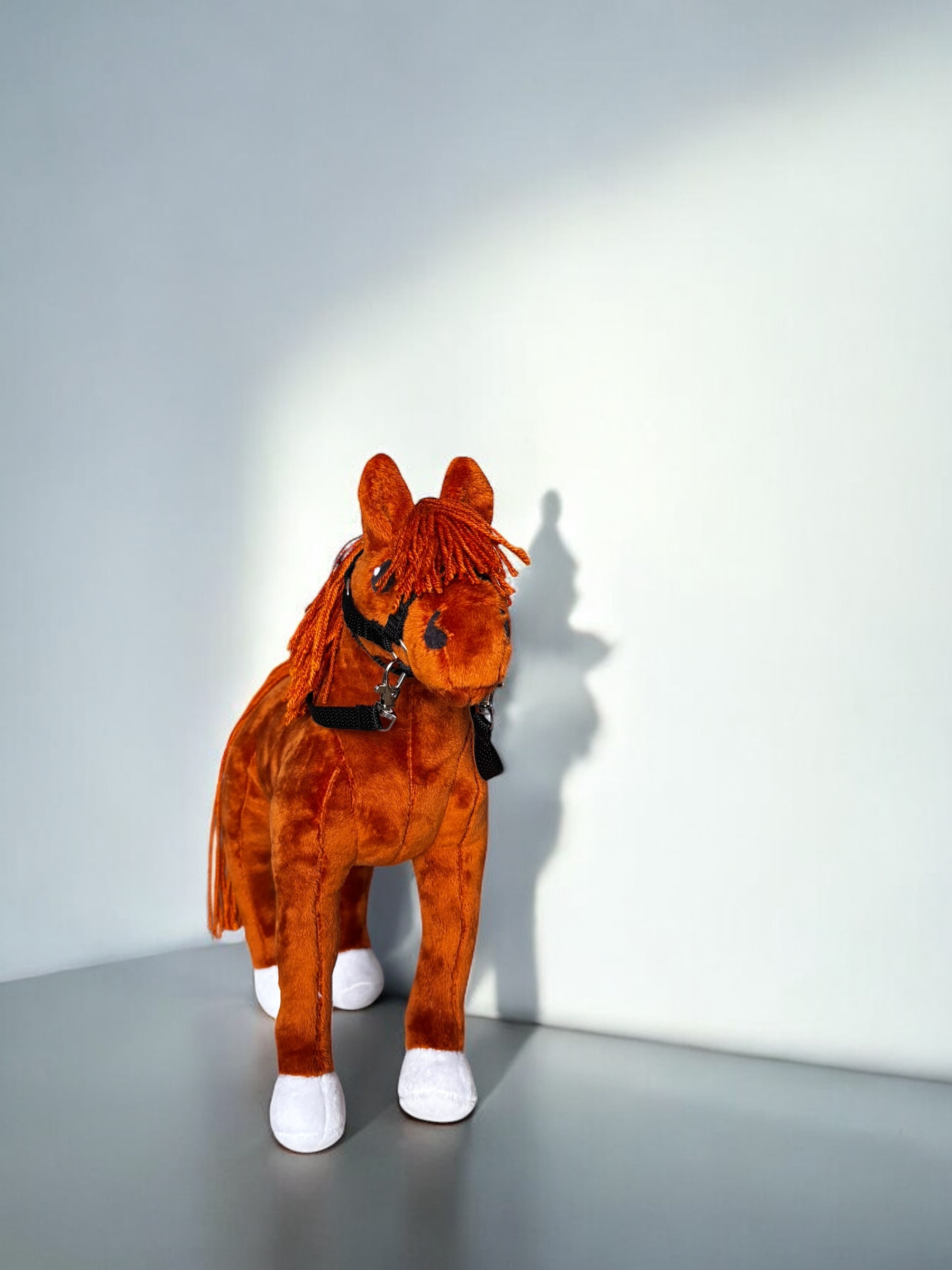 Konik, wykonany z miękkiej, przyjemnej w dotyku tkaniny, charakteryzuje się stabilnymi nogami. Włosy konika są z włóczki, tworząc bujną grzywą co sprawia jeszcze większą frajdę przy zabawie ,można wyplatać piękne fryzury, dodaje mu jeszcze większego uroku.