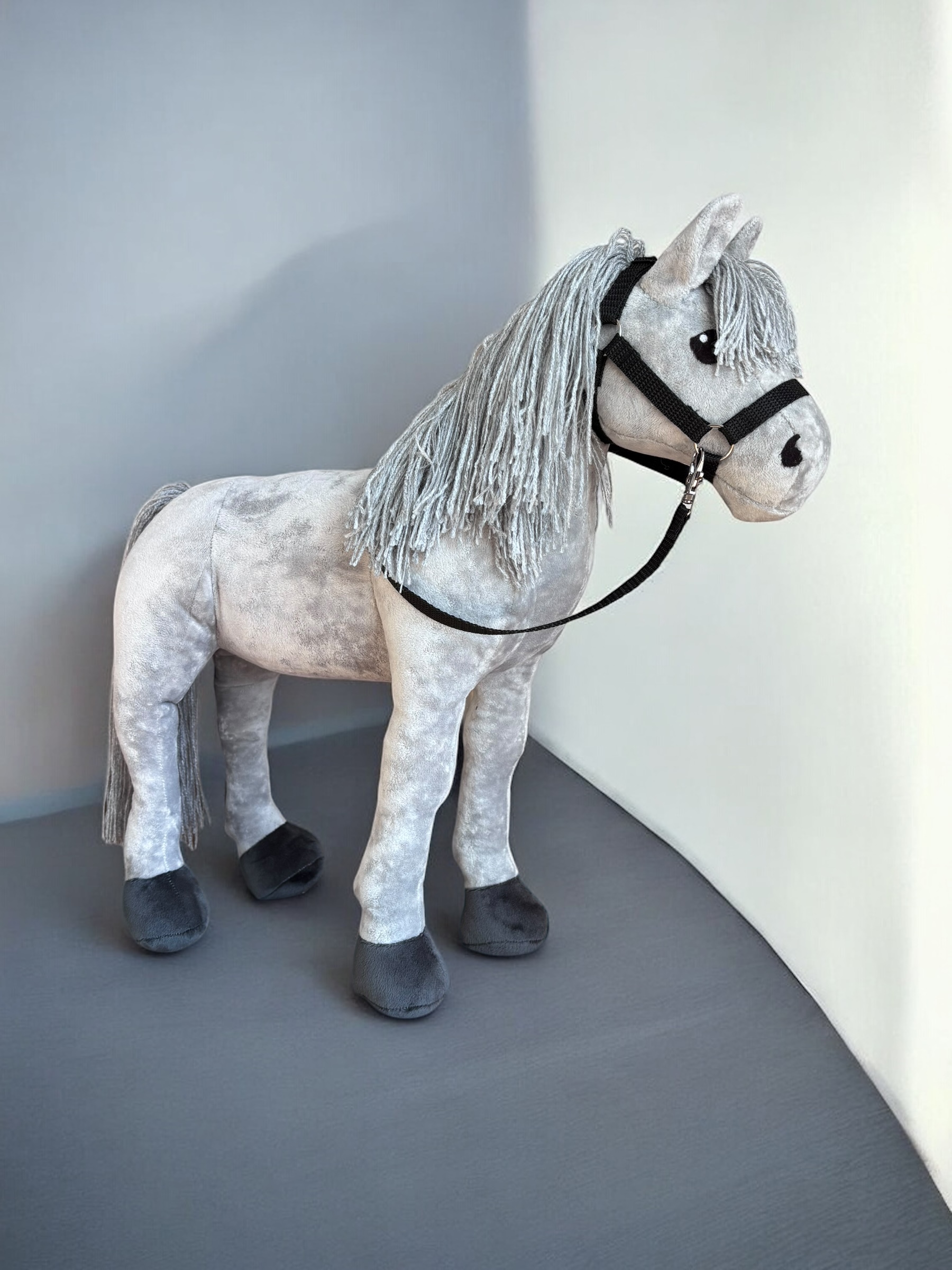 Konik, wykonany z miękkiej, przyjemnej w dotyku tkaniny, charakteryzuje się stabilnymi nogami. Włosy konika są z włóczki, tworząc bujną grzywą co sprawia jeszcze większą frajdę przy zabawie ,można wyplatać piękne fryzury, dodaje mu jeszcze większego uroku.