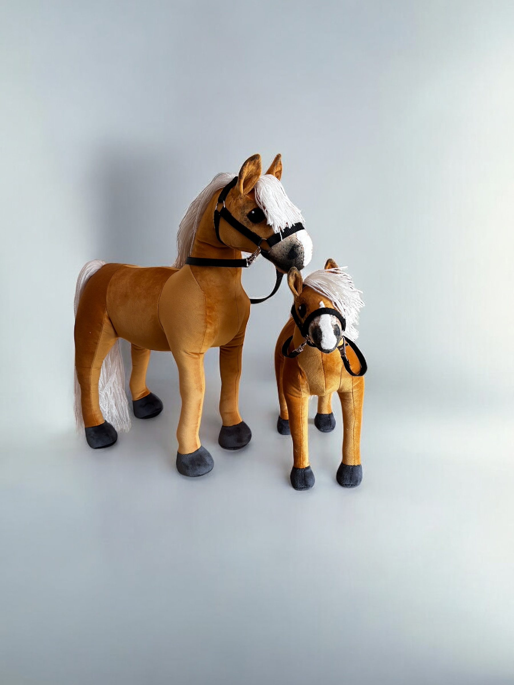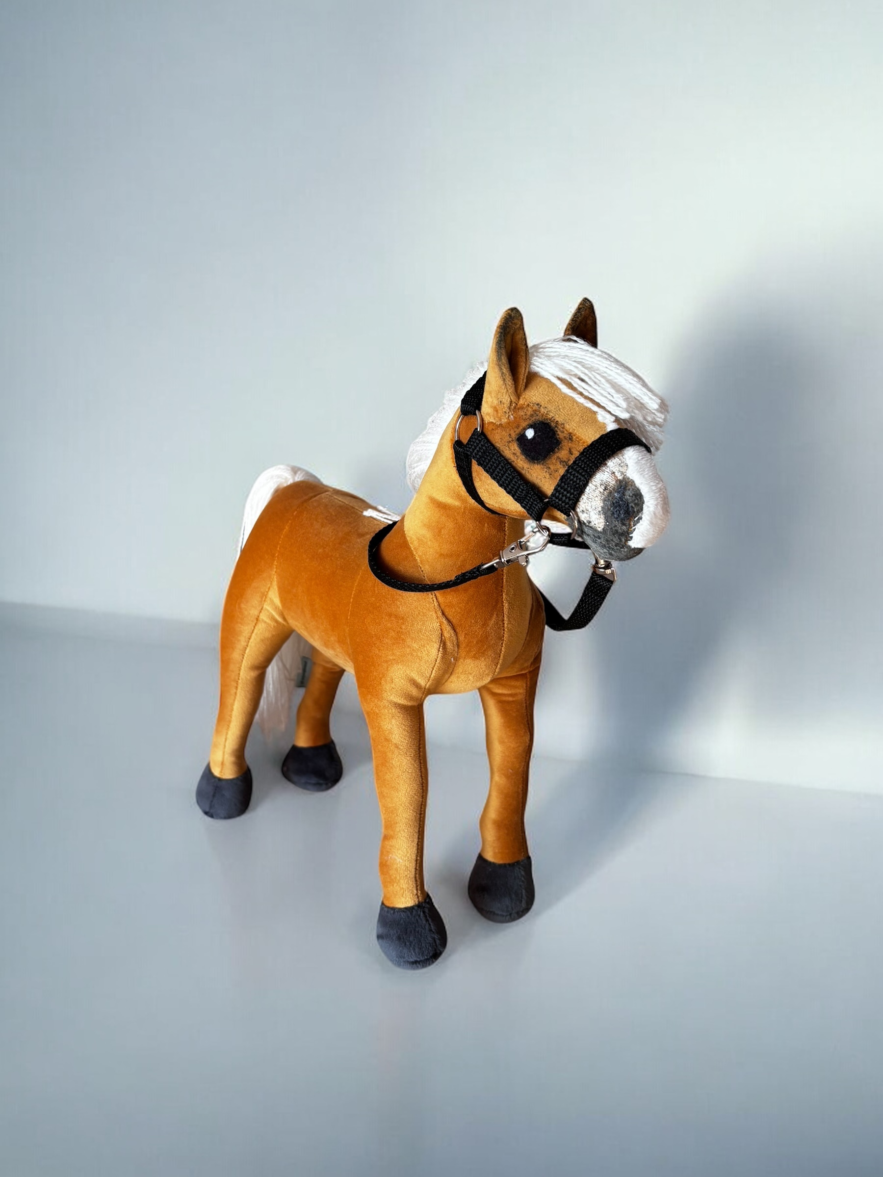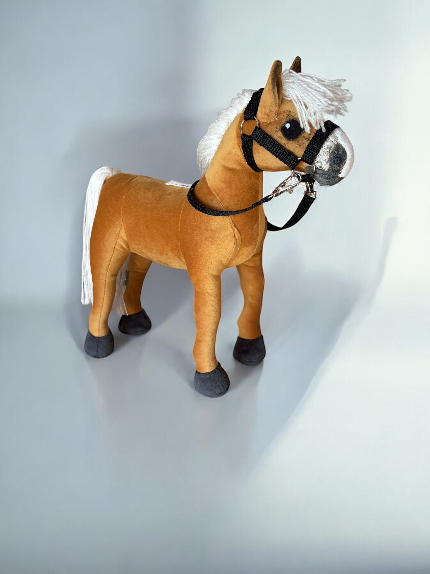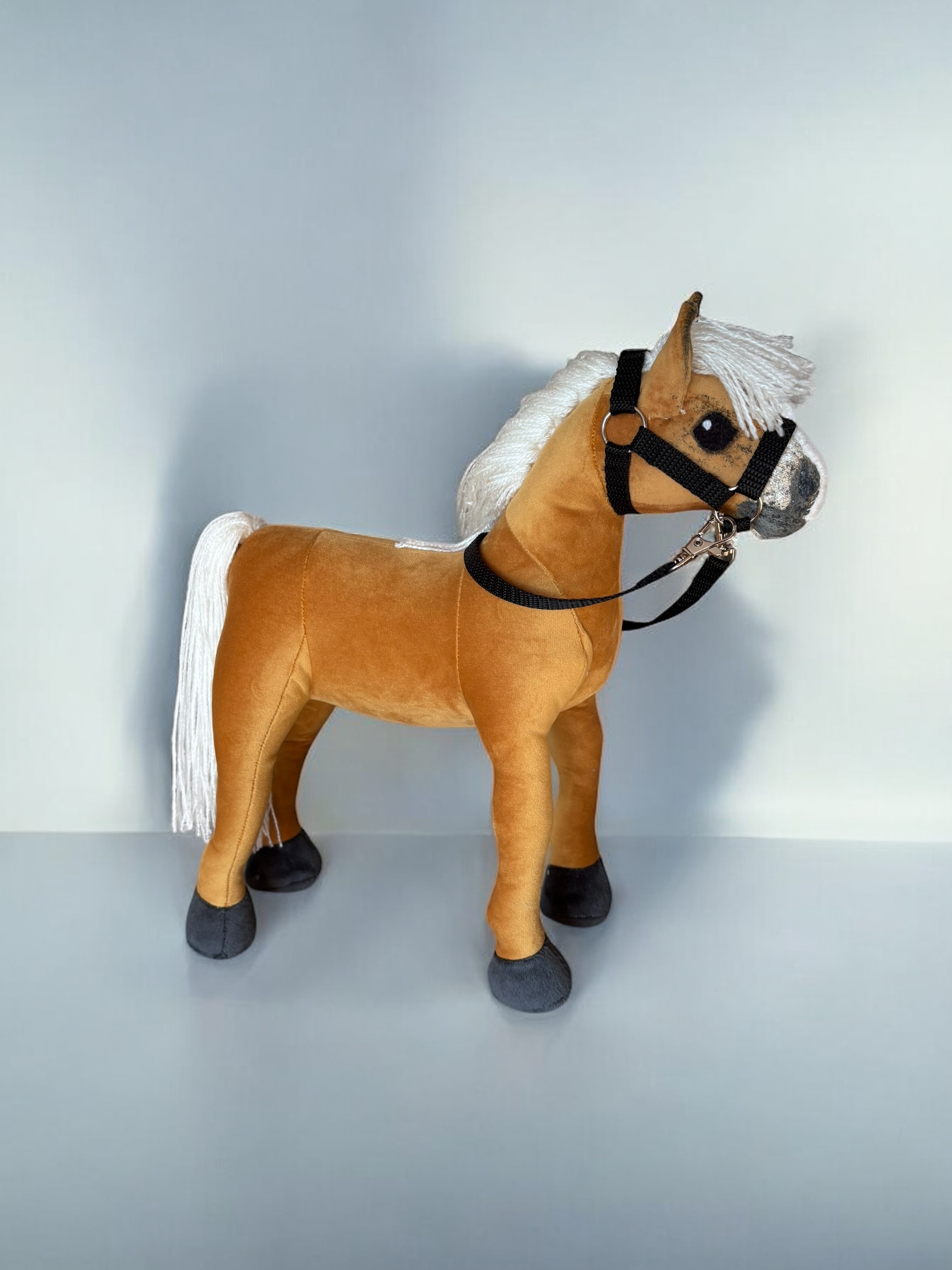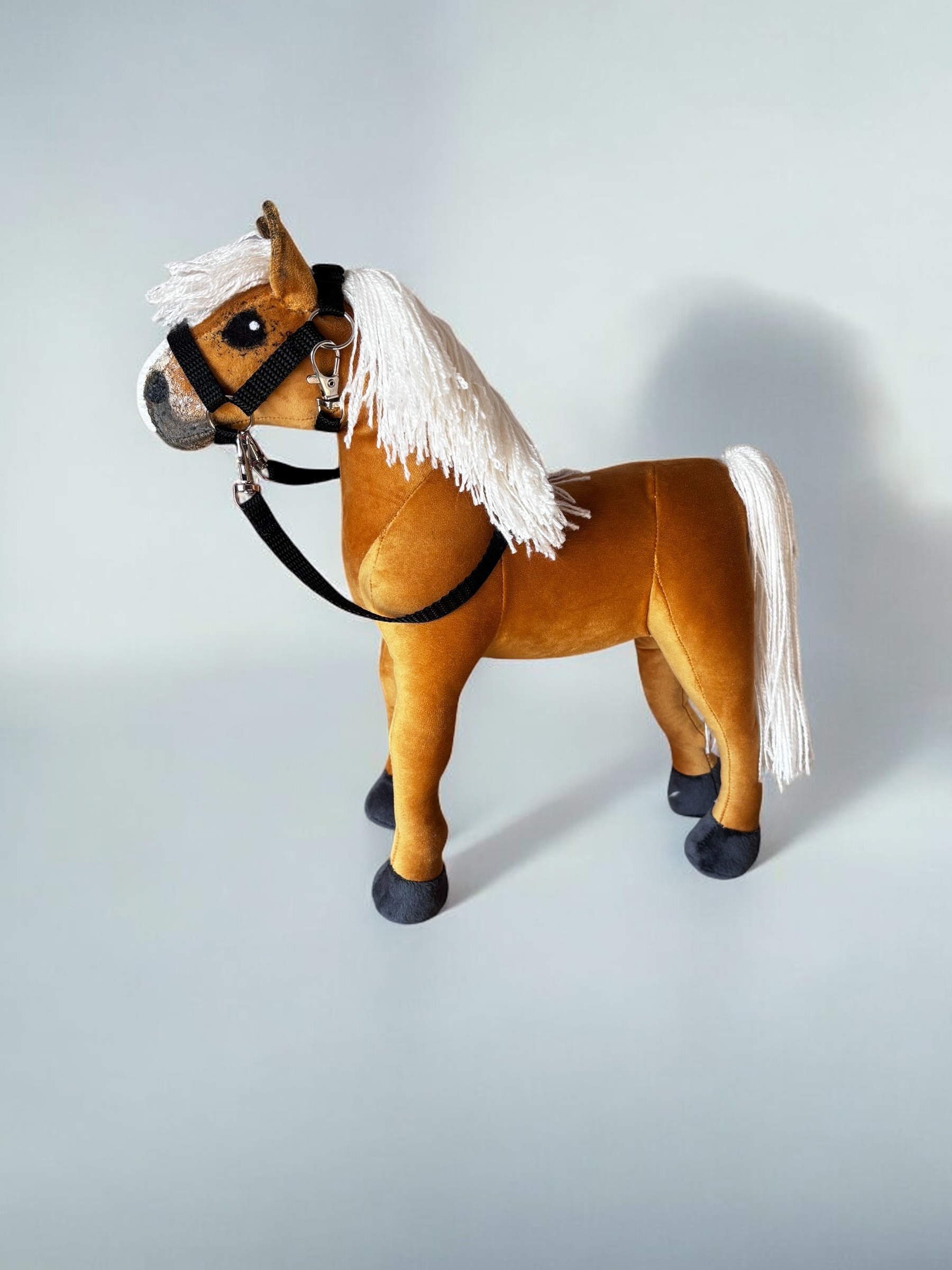 Konik, wykonany z miękkiej, przyjemnej w dotyku tkaniny, charakteryzuje się stabilnymi nogami. Włosy konika są z włóczki, tworząc bujną grzywą co sprawia jeszcze większą frajdę przy zabawie ,można wyplatać piękne fryzury, dodaje mu jeszcze większego uroku.