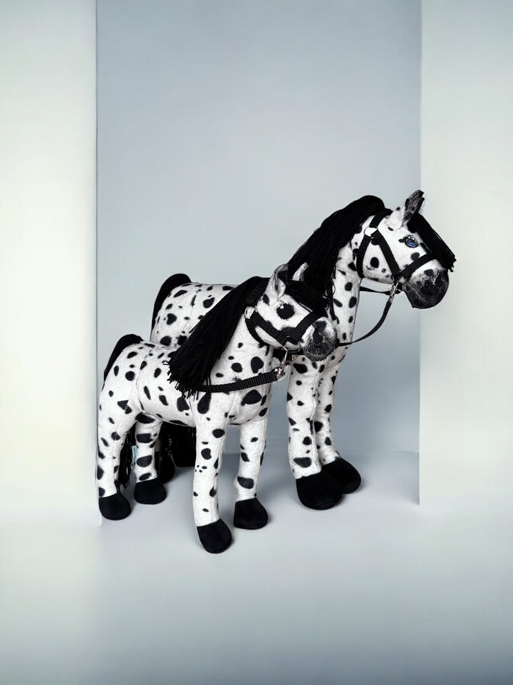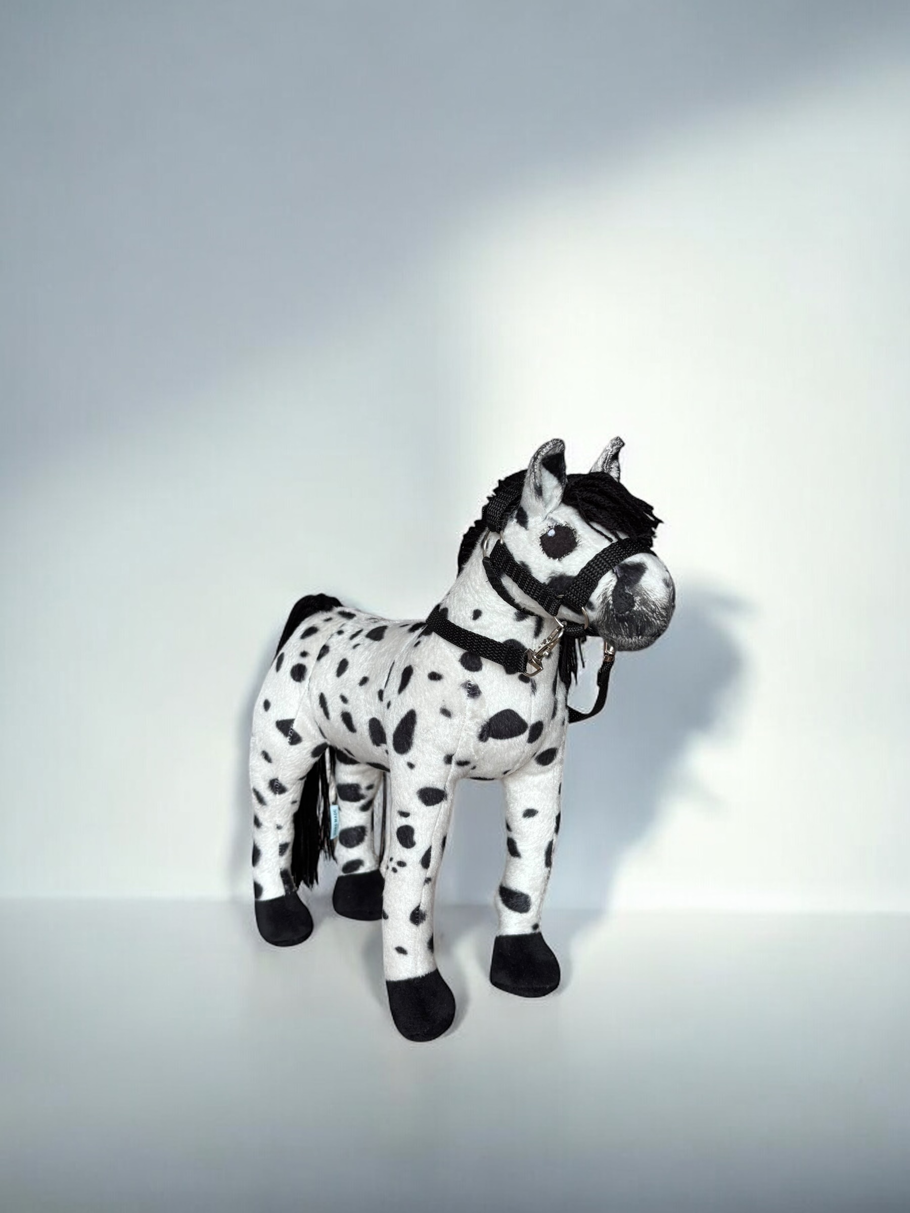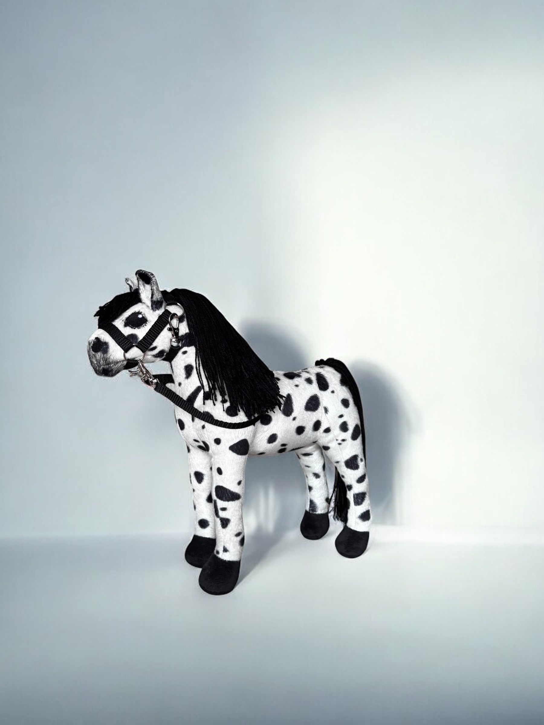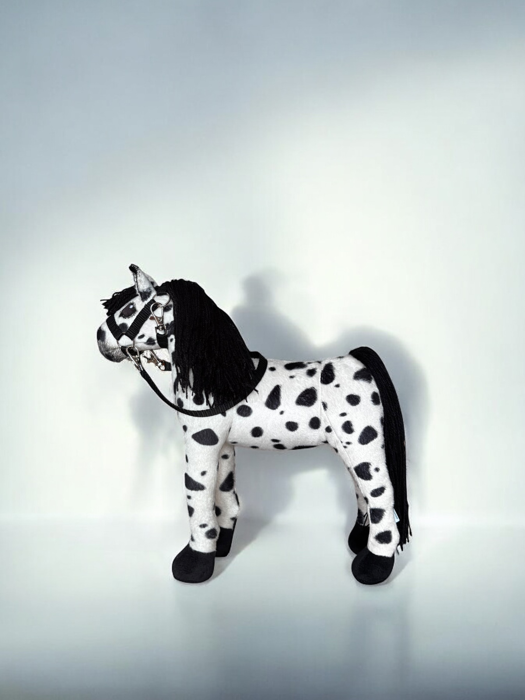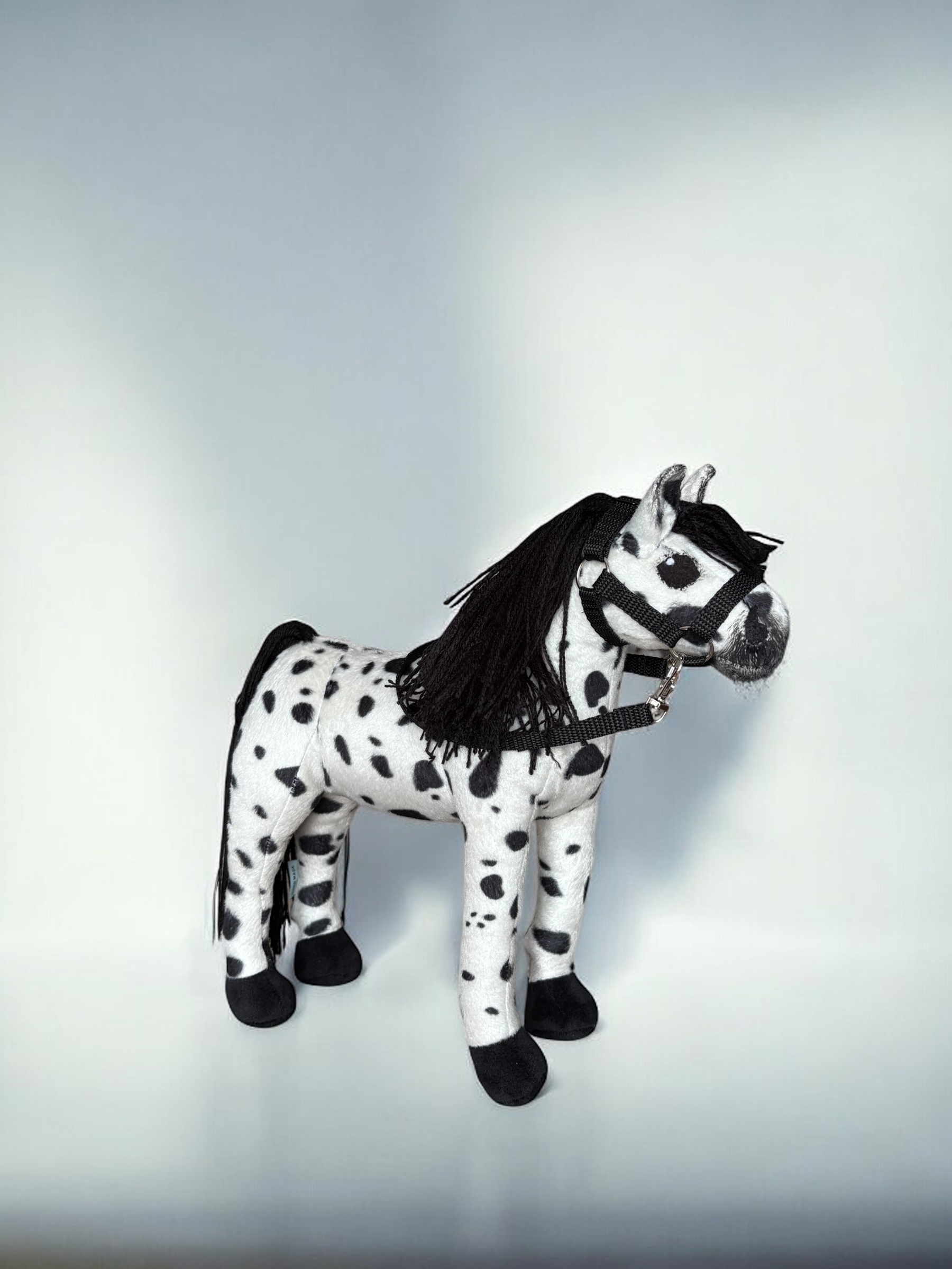Konik, wykonany z miękkiej, przyjemnej w dotyku tkaniny, charakteryzuje się stabilnymi nogami. Włosy konika są z włóczki, tworząc bujną grzywą co sprawia jeszcze większą frajdę przy zabawie ,można wyplatać piękne fryzury, dodaje mu jeszcze większego uroku.