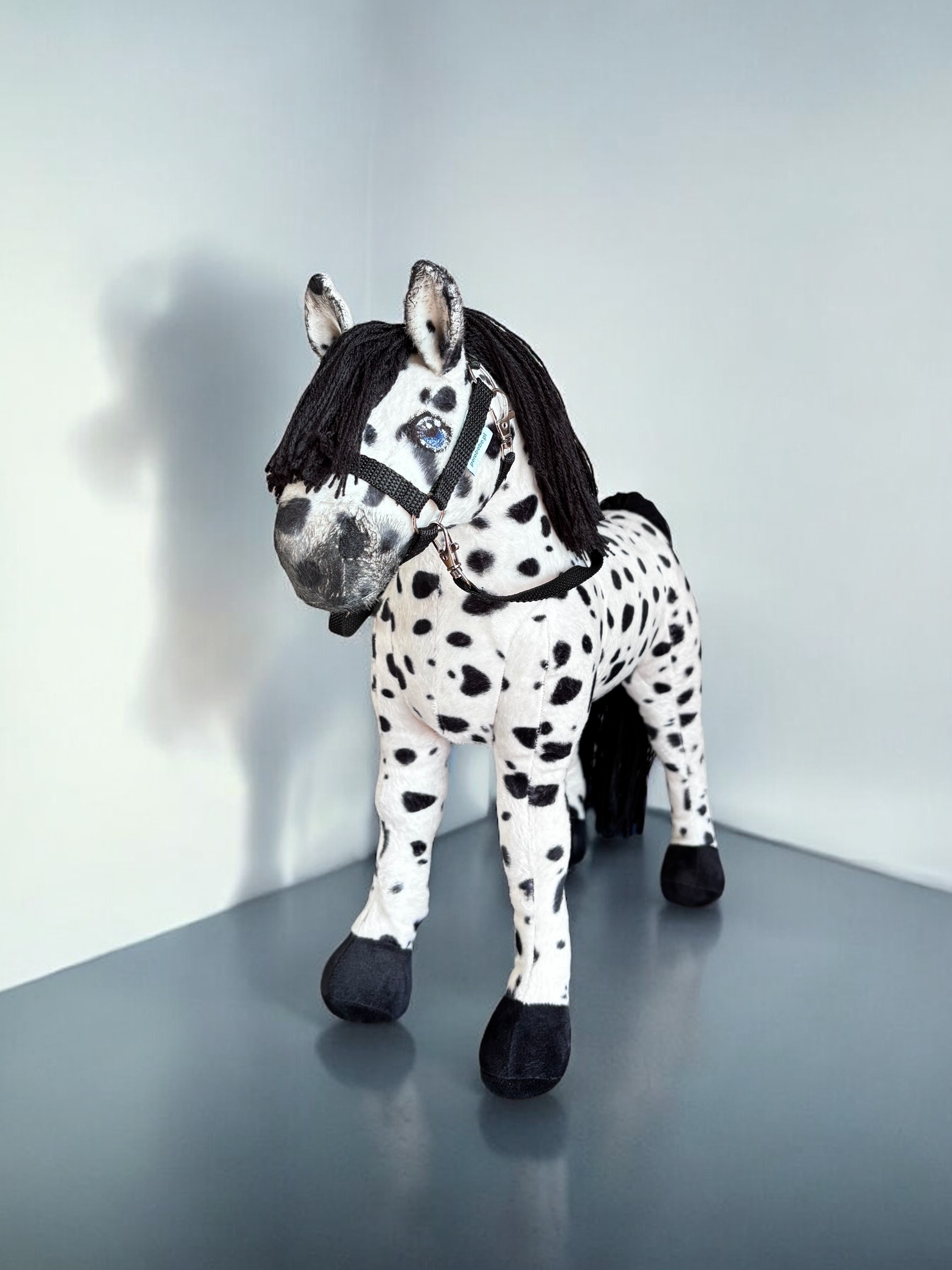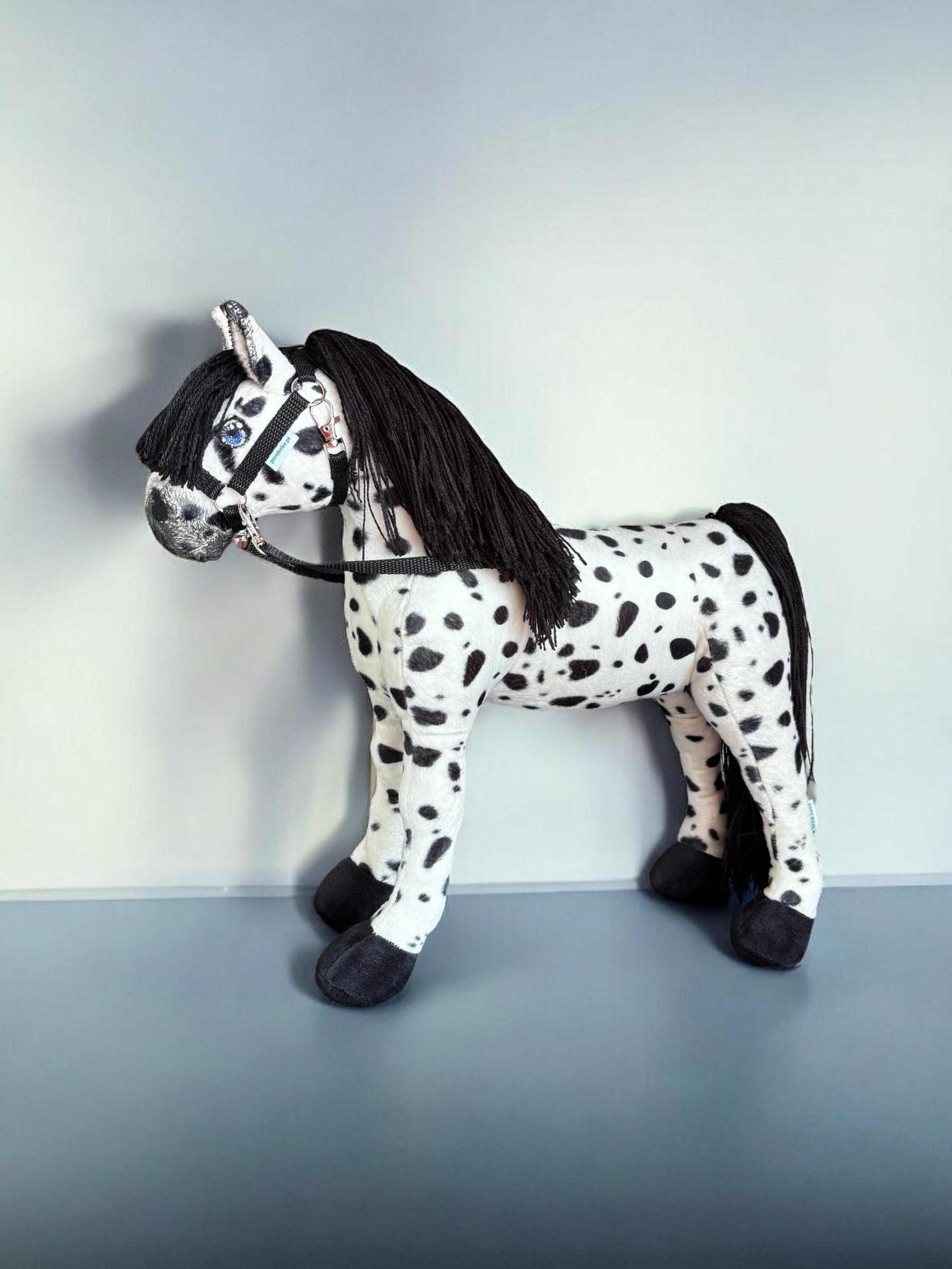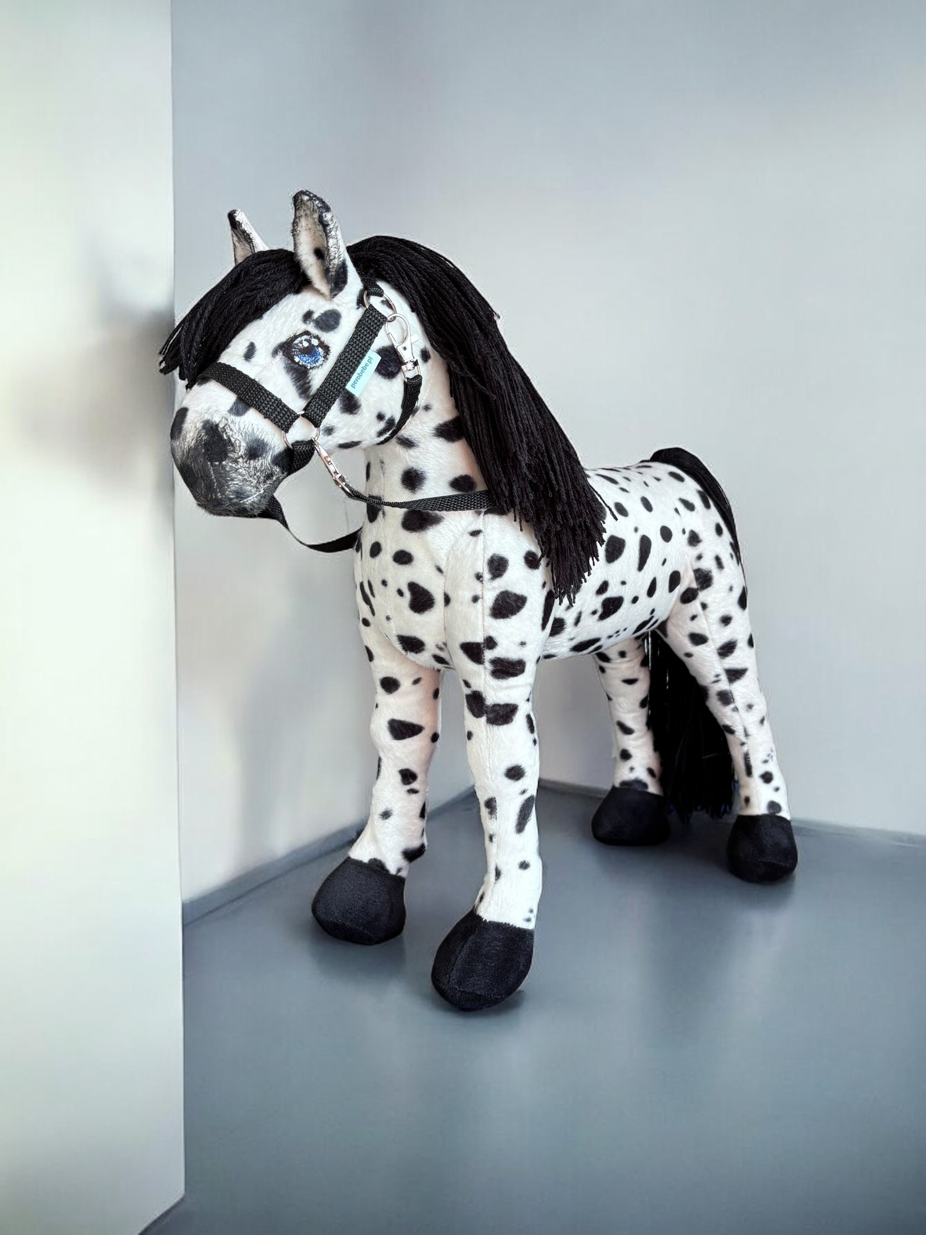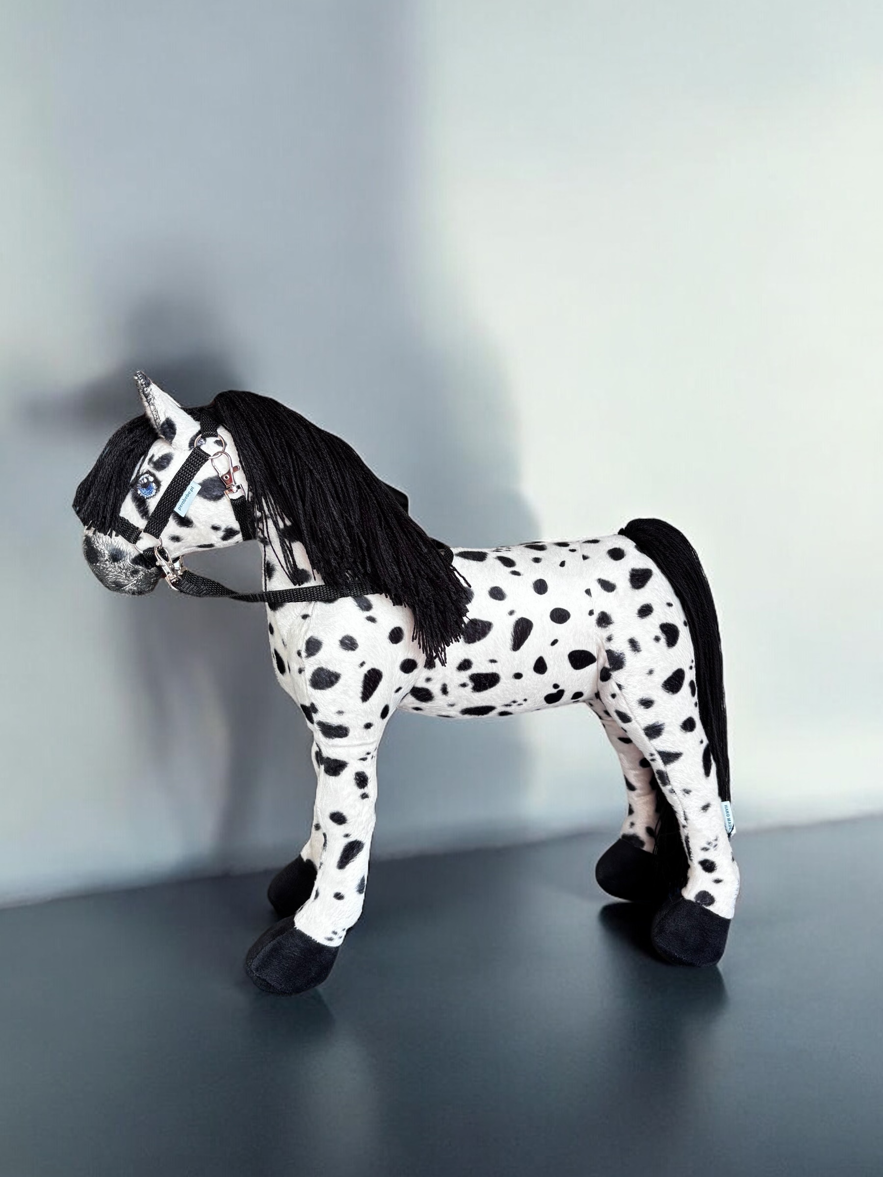 Konik, wykonany z miękkiej, przyjemnej w dotyku tkaniny, charakteryzuje się stabilnymi nogami. Włosy konika są z włóczki, tworząc bujną grzywą co sprawia jeszcze większą frajdę przy zabawie ,można wyplatać piękne fryzury, dodaje mu jeszcze większego uroku.