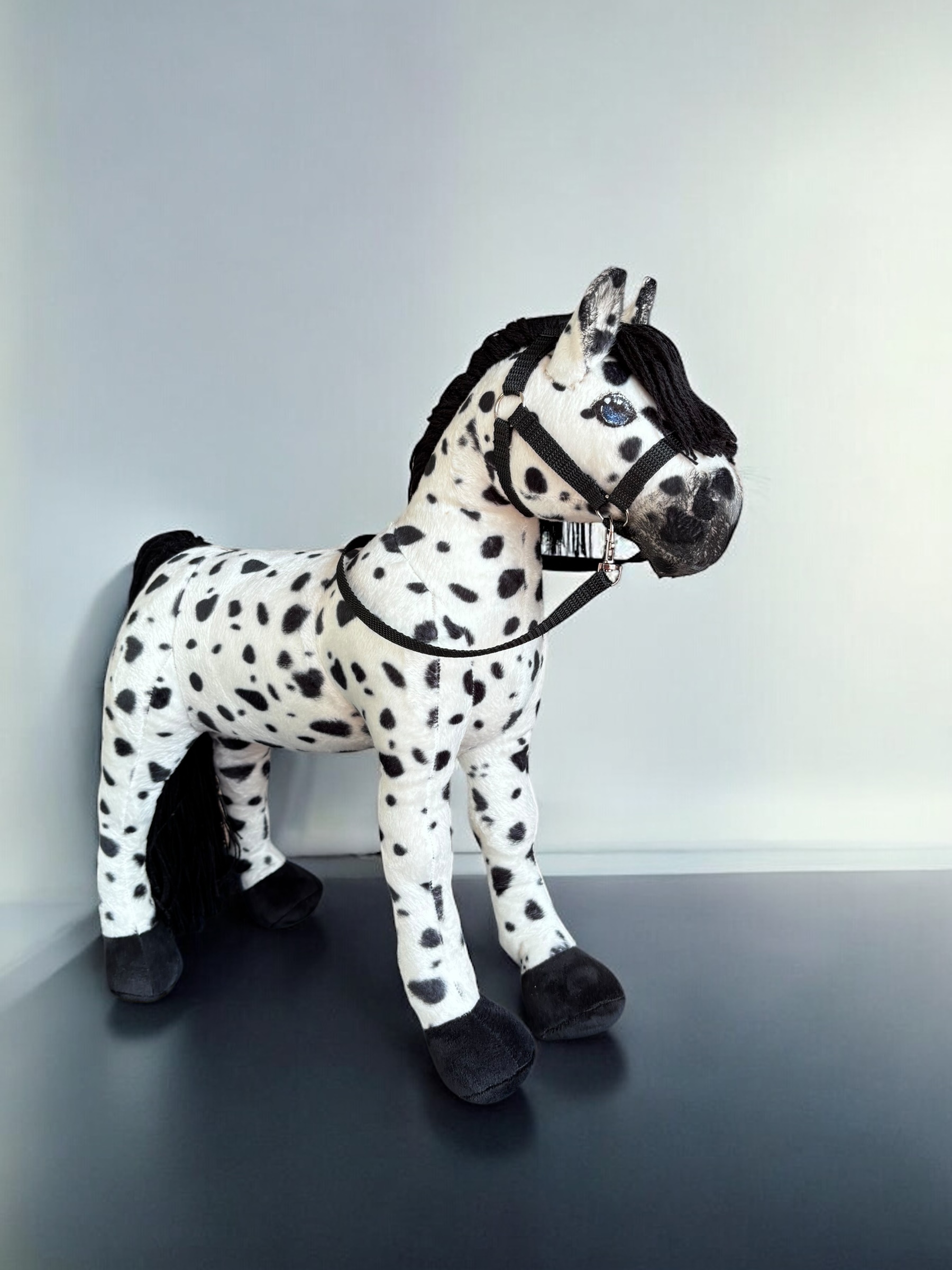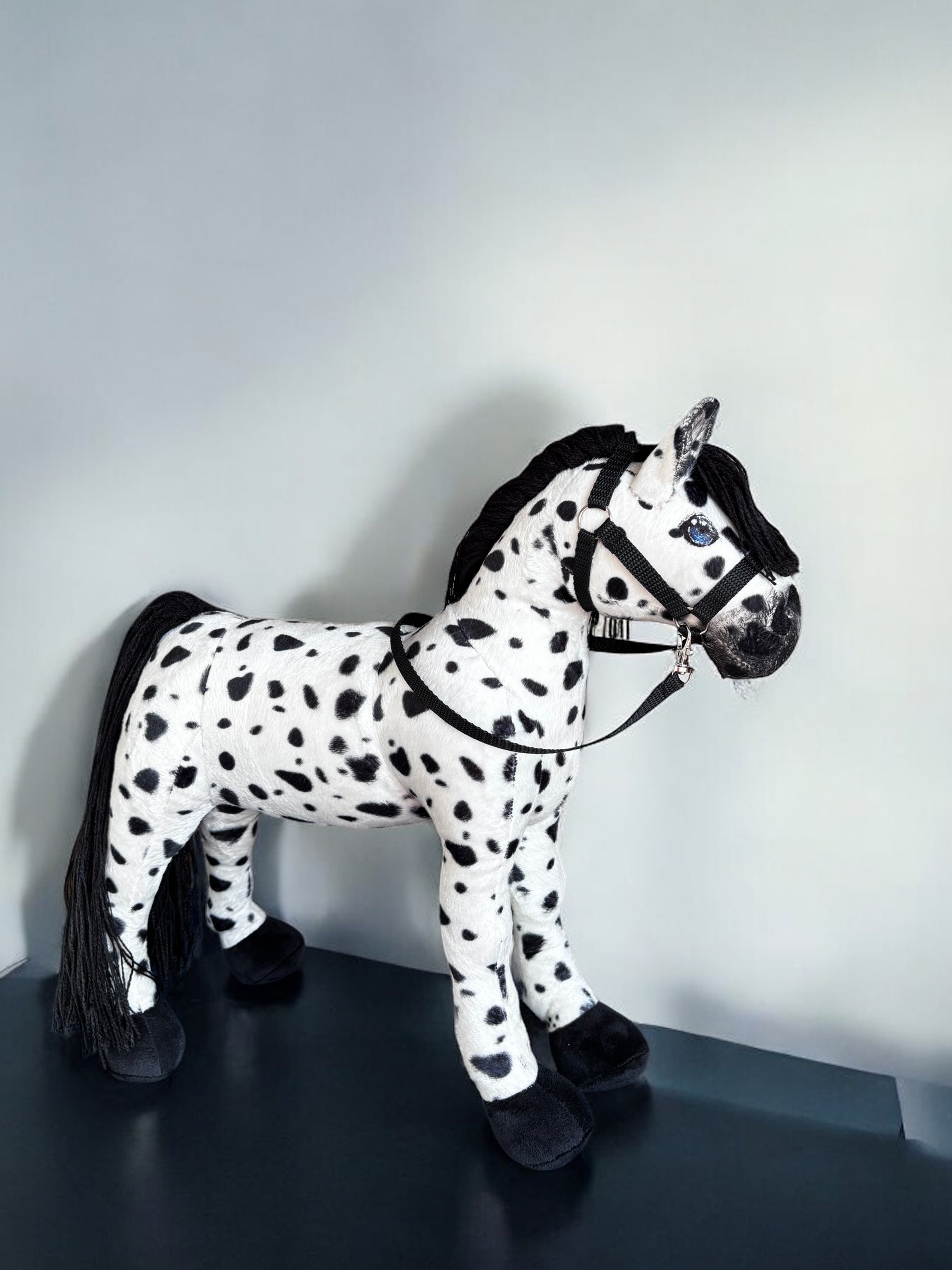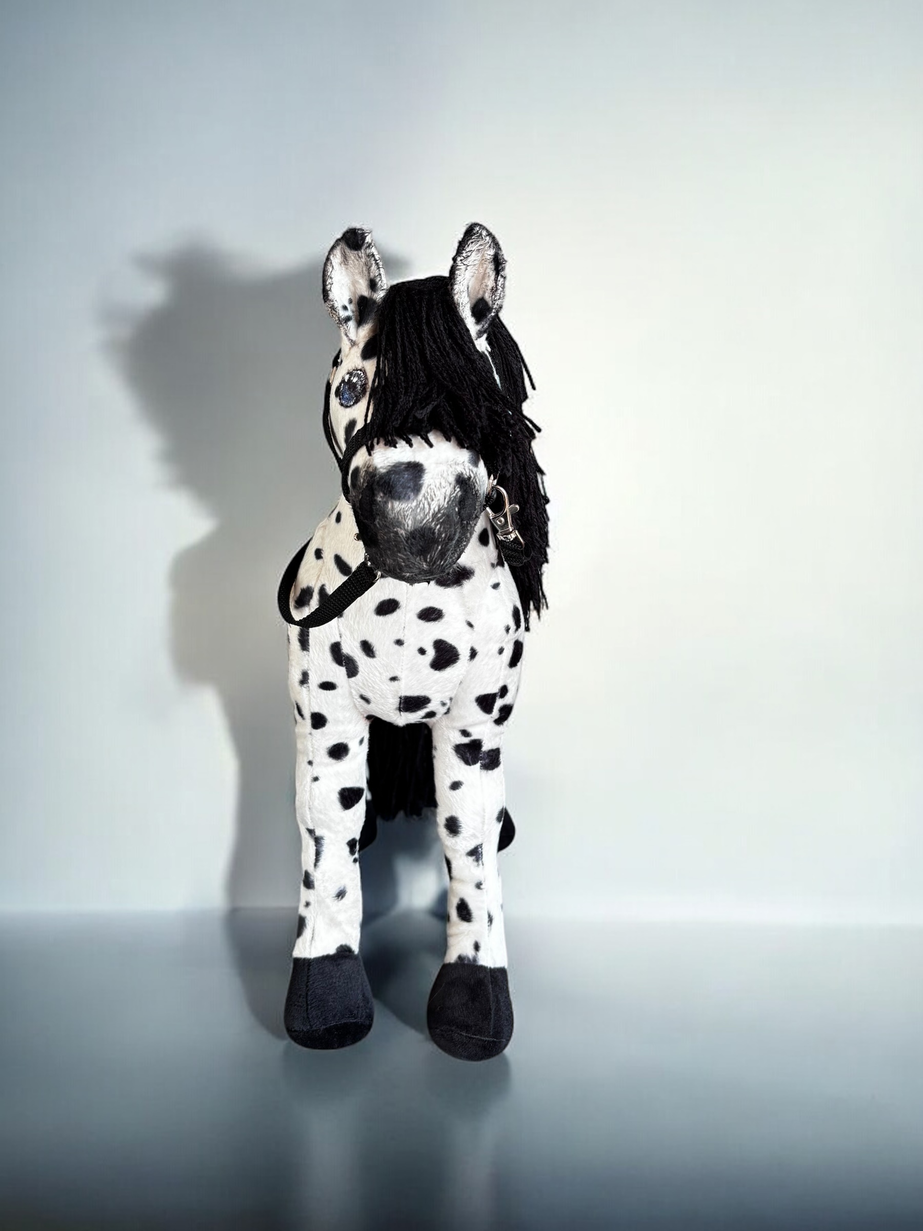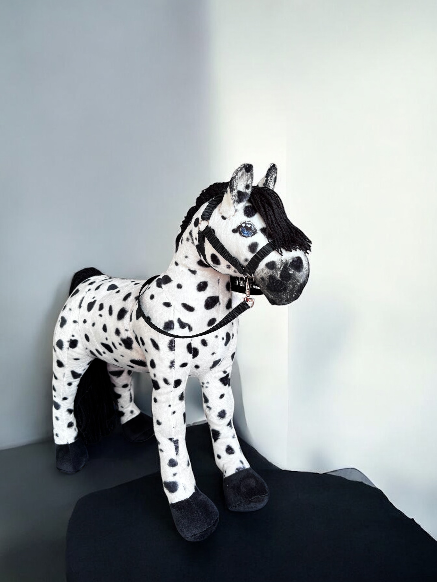 Konik, wykonany z miękkiej, przyjemnej w dotyku tkaniny, charakteryzuje się stabilnymi nogami. Włosy konika są z włóczki, tworząc bujną grzywą co sprawia jeszcze większą frajdę przy zabawie ,można wyplatać piękne fryzury, dodaje mu jeszcze większego uroku.