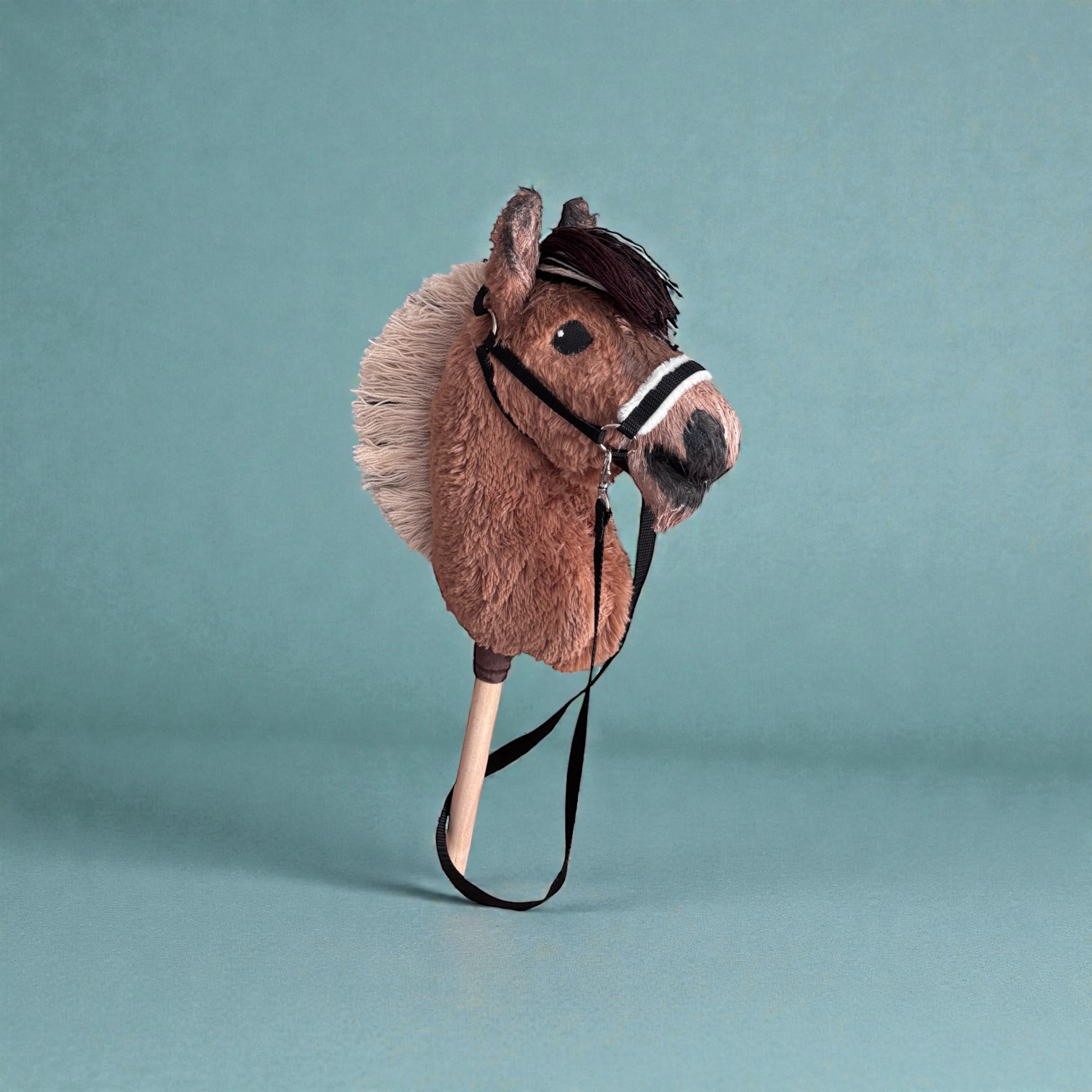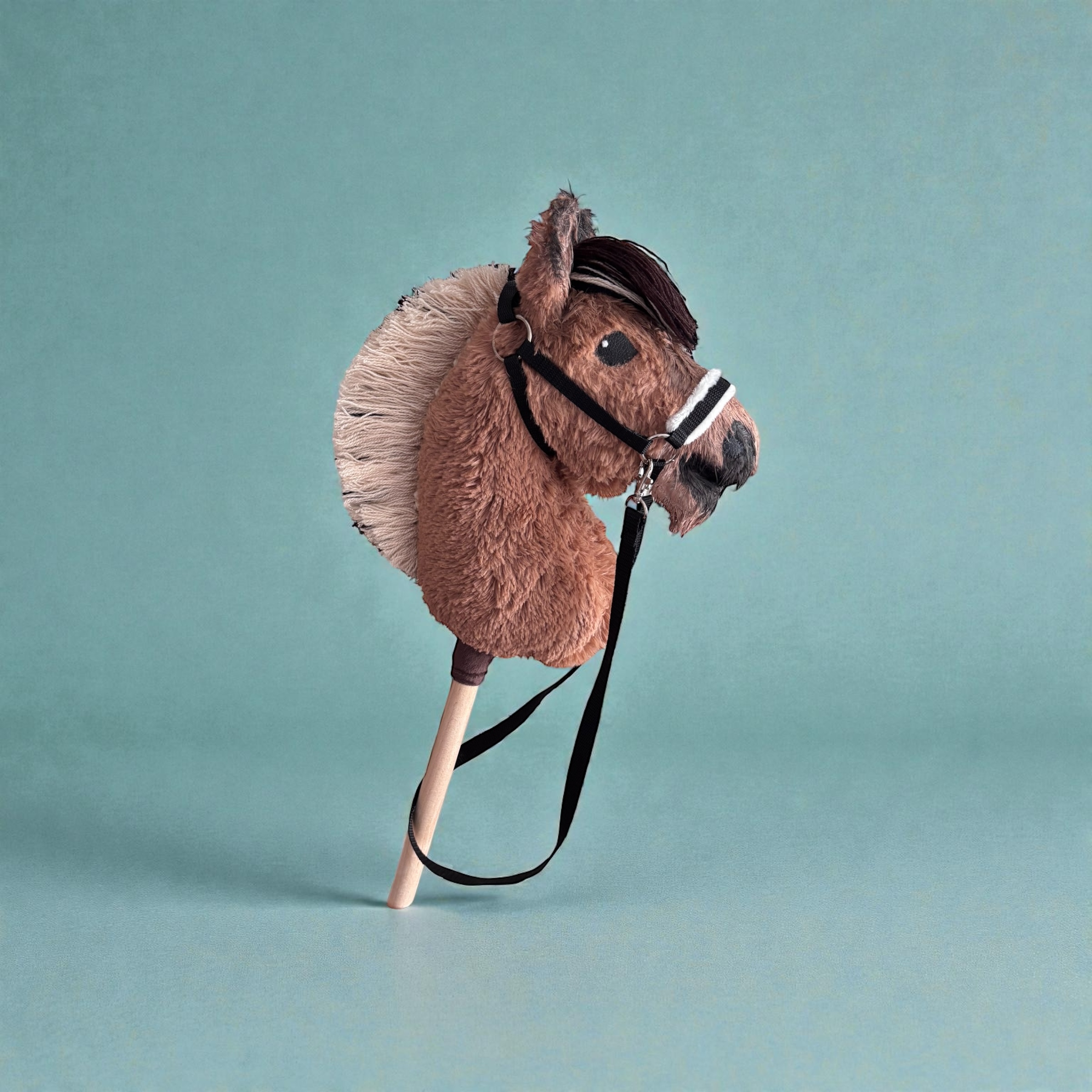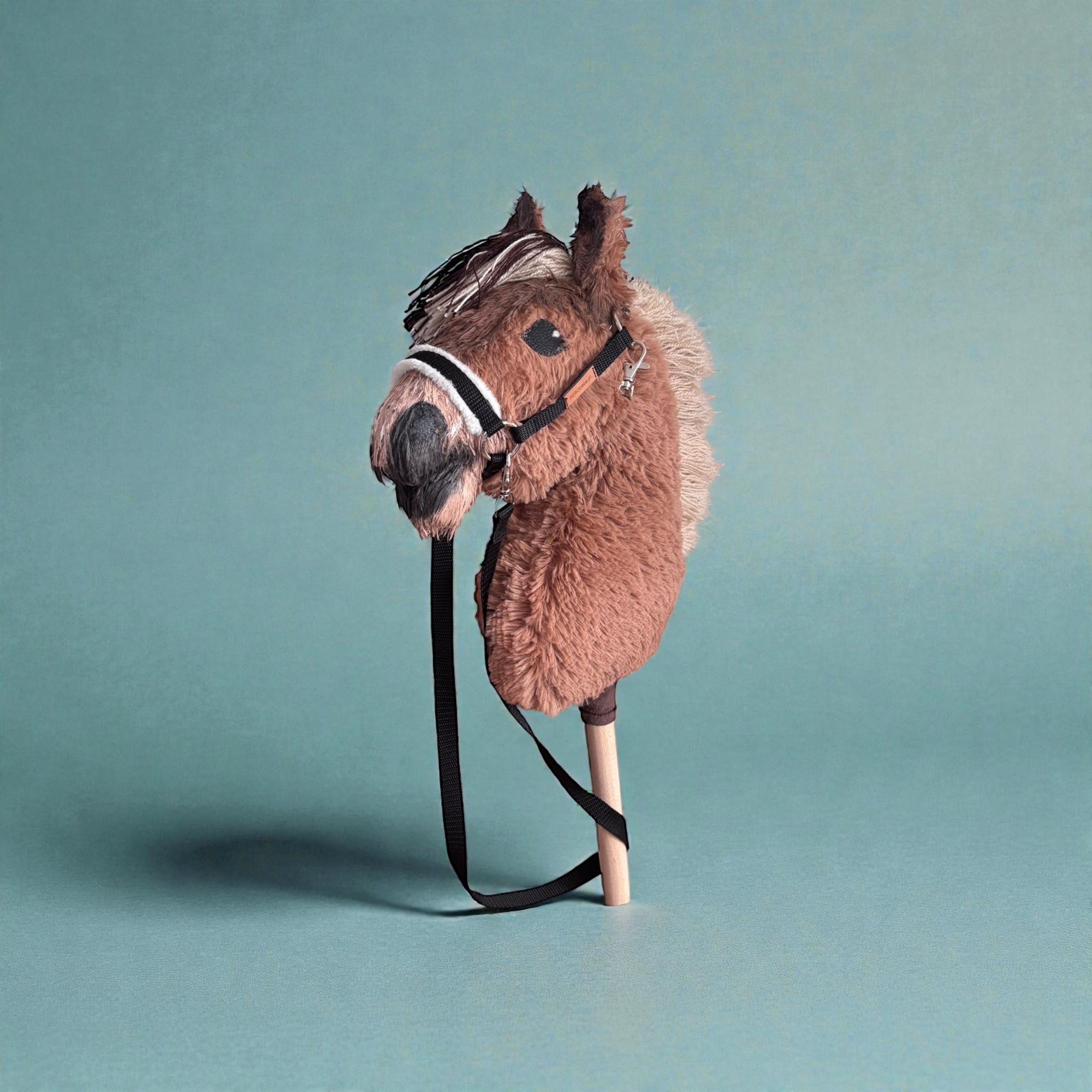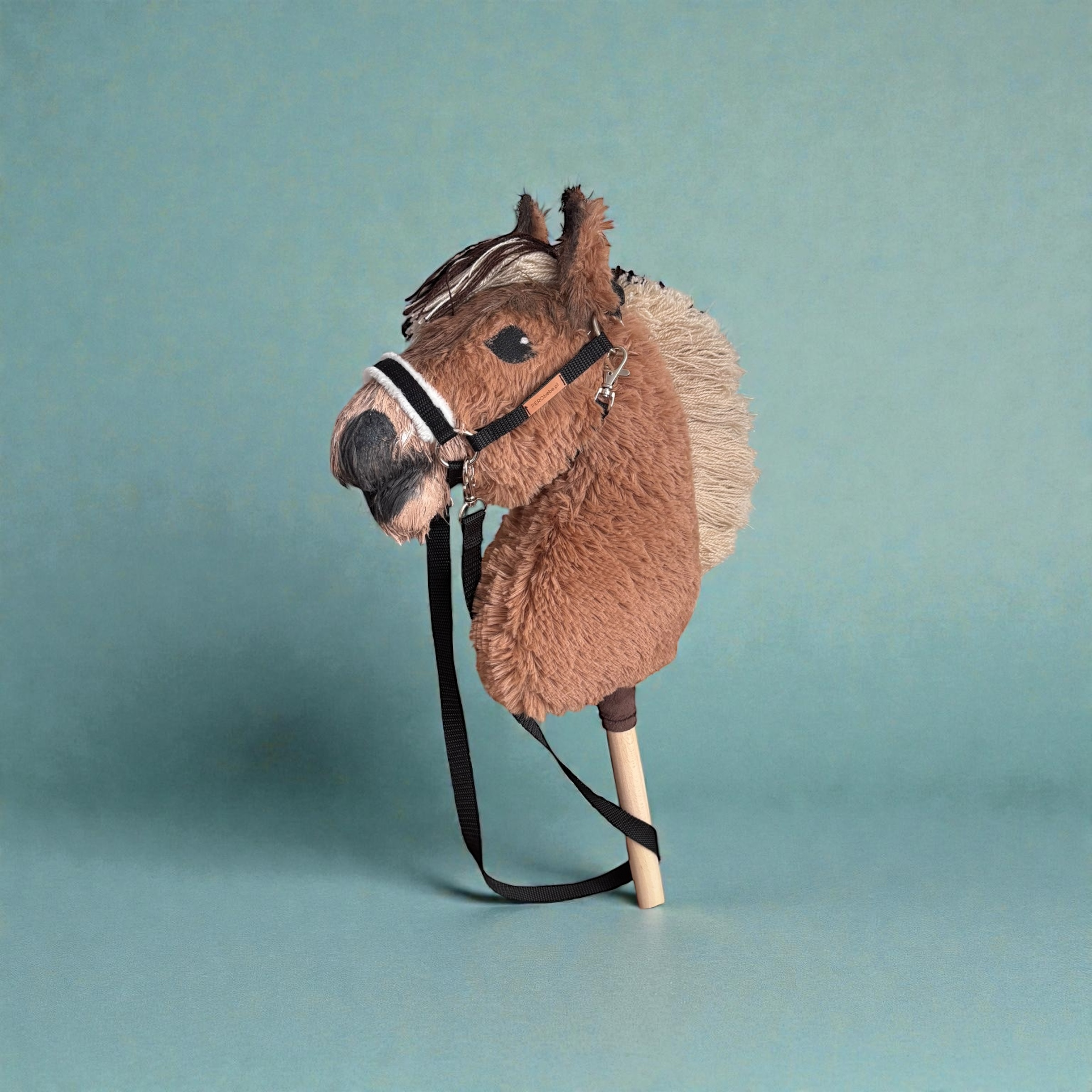 Dłuższa sierść pozwala na czesanie dzięki czemu hobby horse może zyskać indywidualny, efektowny charakter. Konik wykonany jest z wysokiej jakości, miękkich materiałów, z dbałością o detale – starannie wymodelowana głowa, naszyty nosek i wyraziste oczy podkreślają jego autentyczny wygląd.