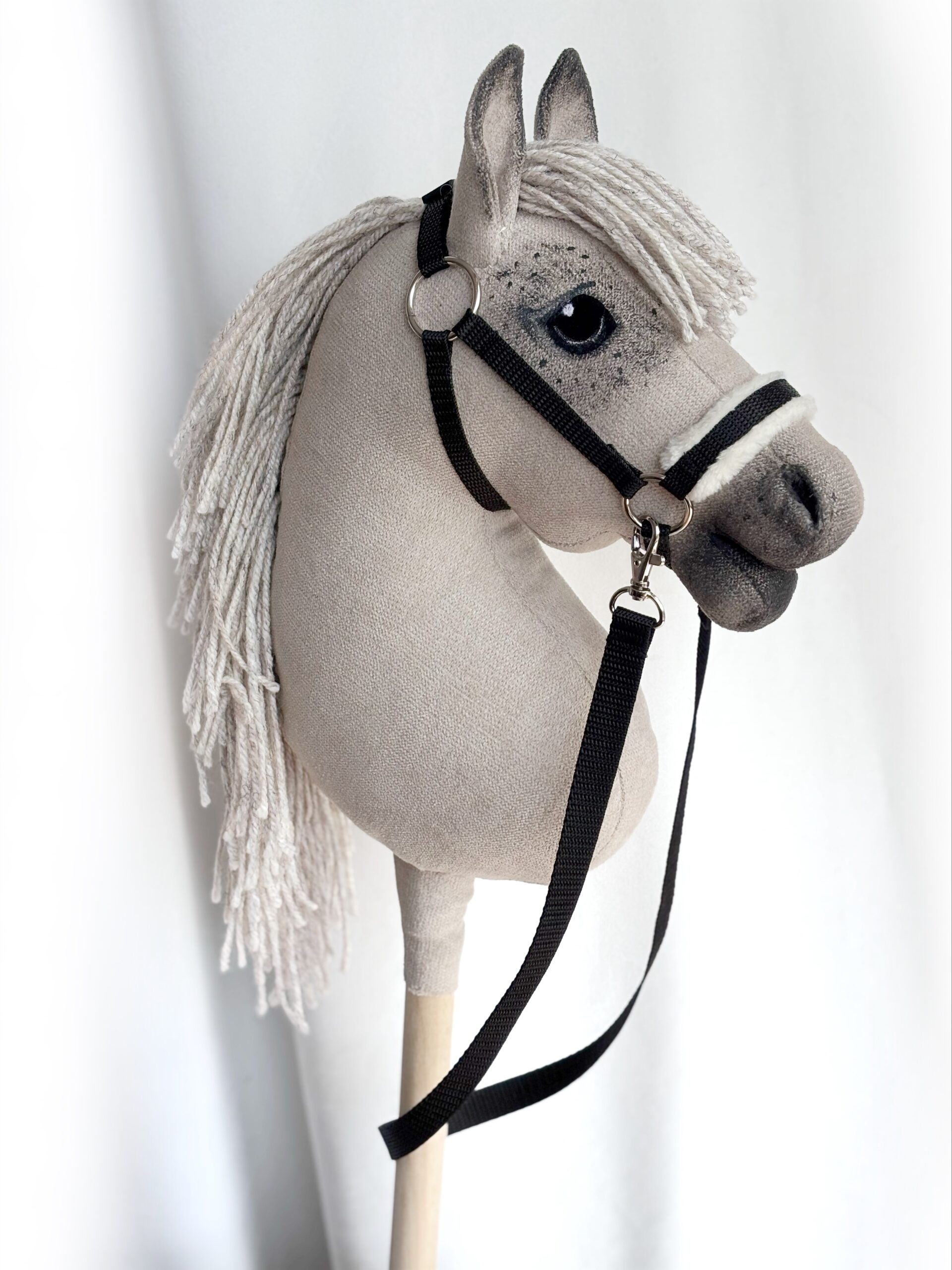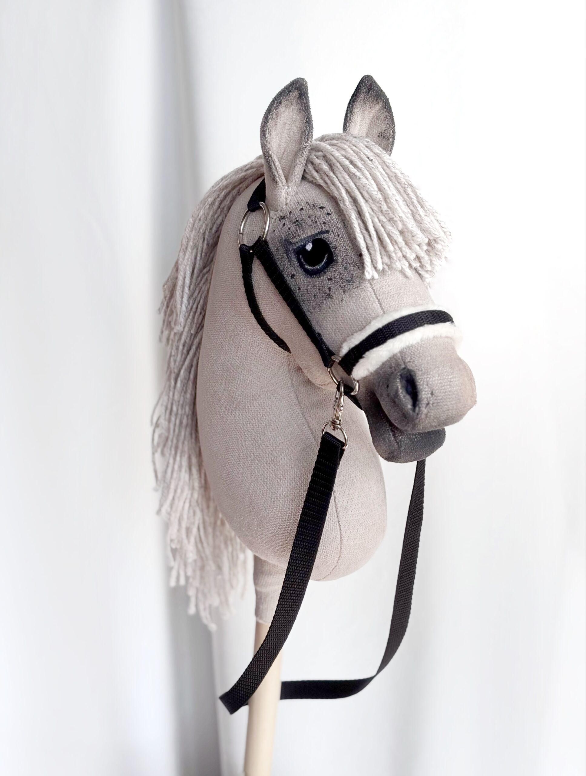 Wyjątkowy koń na kiju Hobby Horse w jasnej maści cieniowanej na siwka zachwyca naturalnym wyglądem i starannym wykonaniem. Subtelne cieniowanie nadaje sierści głębi i realistycznego charakteru.