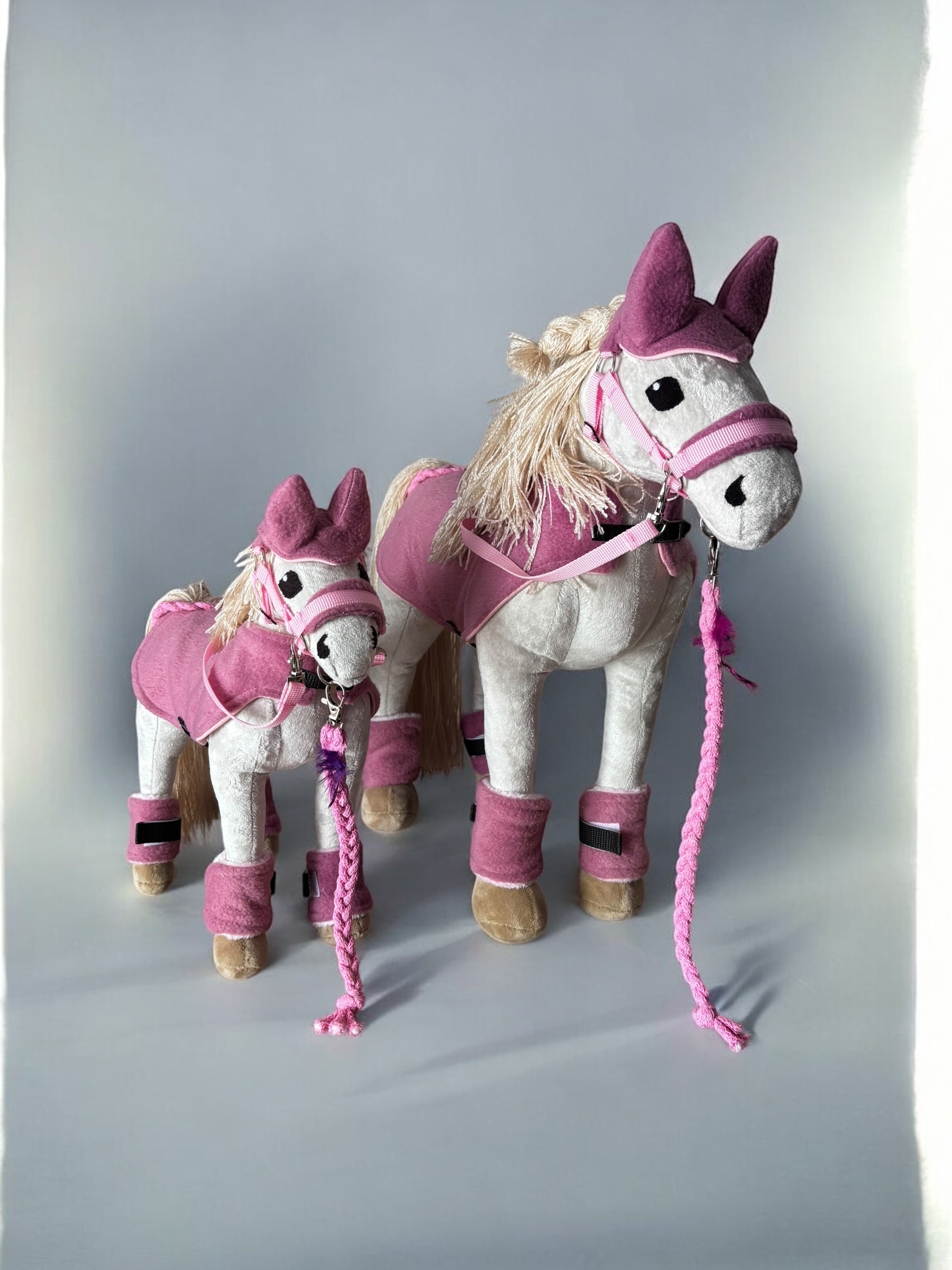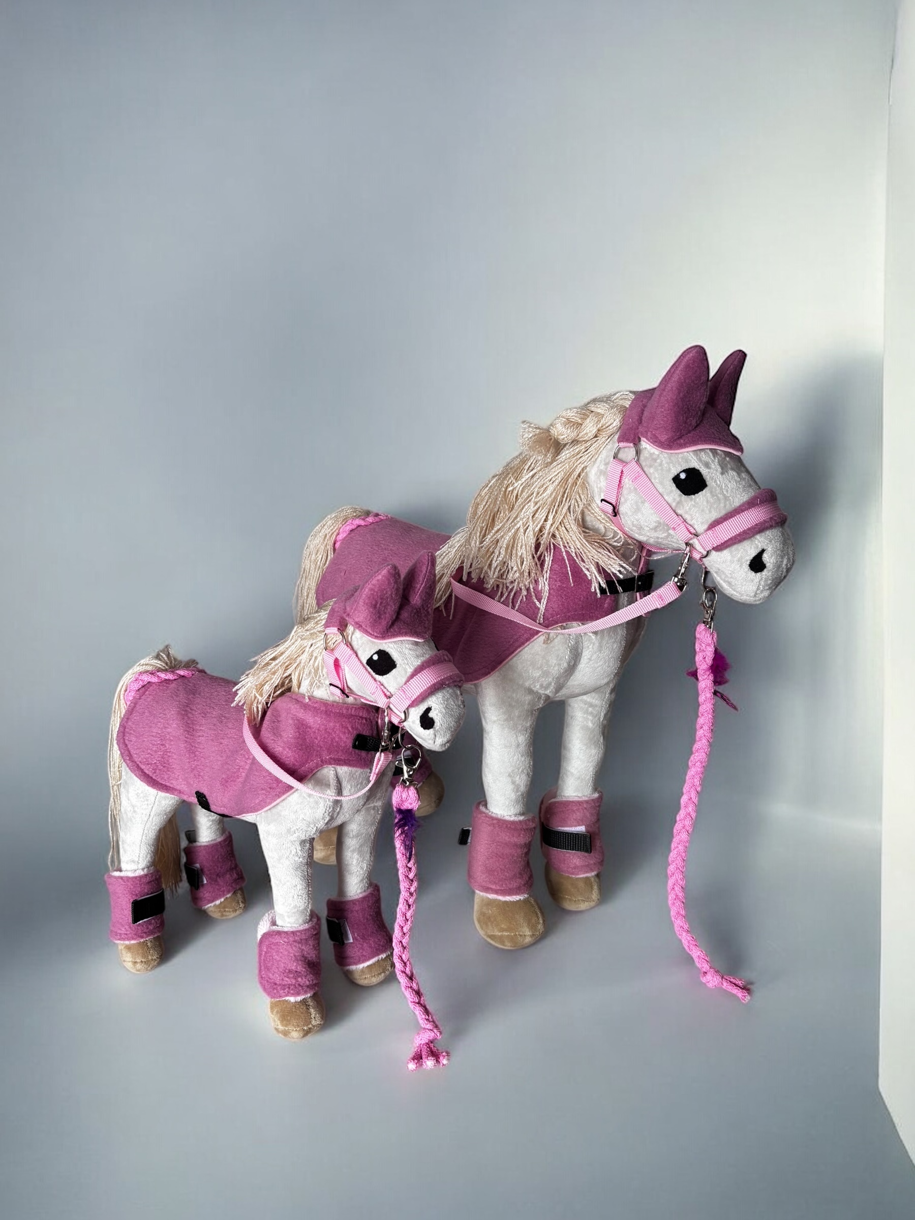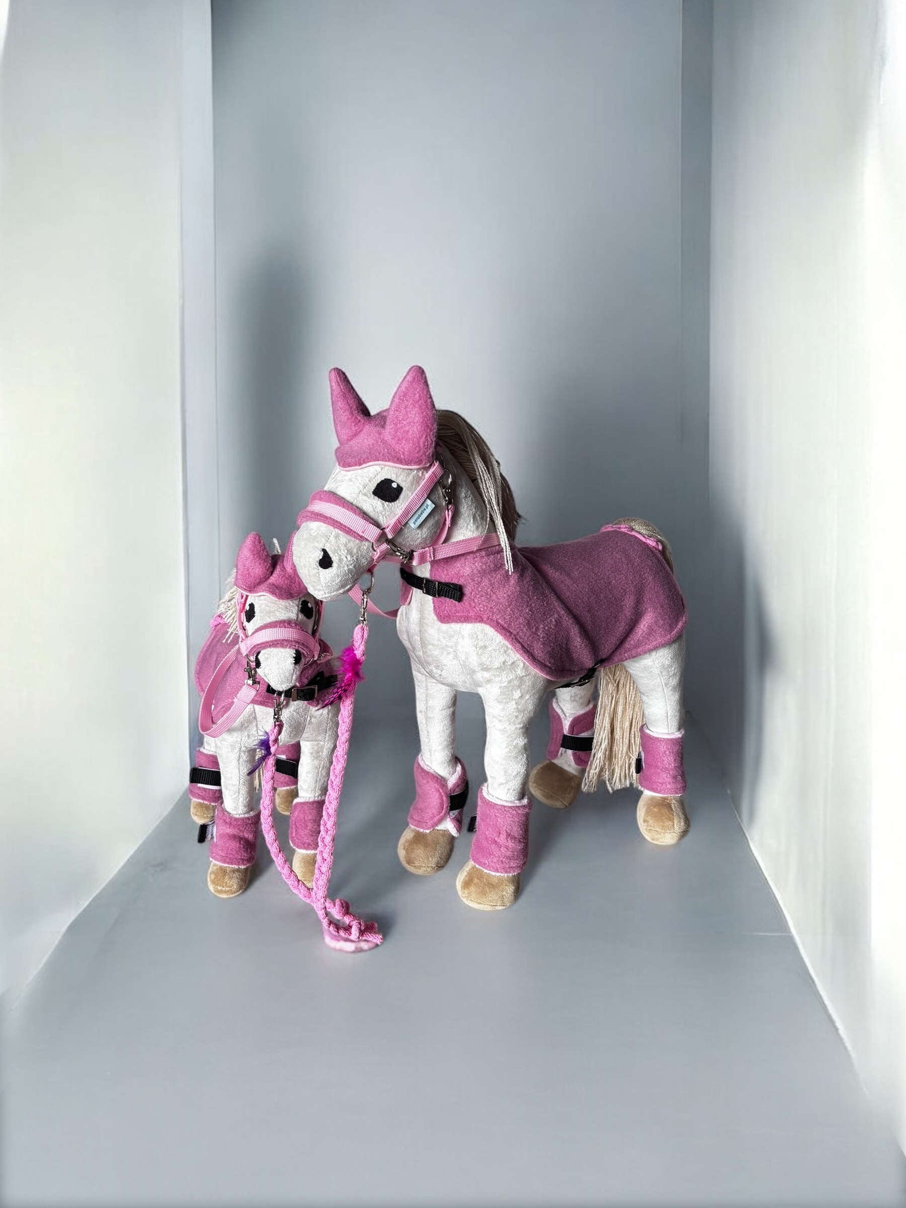 Zestaw Baby Horse Mini to perfekcyjny wybór dla młodych miłośników jeździectwa! W skład zestawu wchodzi wszystko, czego potrzeba do kompleksowej opieki nad miniaturowym konikiem. Znajdziesz tu czapeczkę, która zadba o komfort Twojego kucyka, a także regulowaną derkę zapinaną na sprzączki, która idealnie dopasowuje się do jego ciała. W zestawie znajduje się również regulowany kantar, który zapewnia wygodę i pełną kontrolę podczas jazdy. Dodatkowo, wodze w zestawie ułatwiają prowadzenie, a ochraniacze na nogi zapinane na rzep chronią nogi konika przed urazami. Całość dopełnia uwiąz z kolorowym piórkiem, który nadaje zestawowi wyjątkowego, uroczego charakteru. To idealny komplet do zabawy i pielęgnacji!