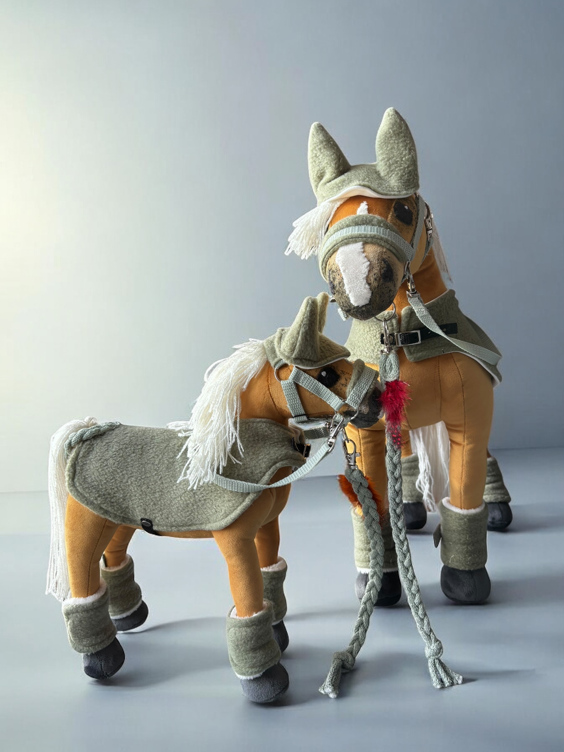 Zestaw Baby Horse Mini to perfekcyjny wybór dla młodych miłośników jeździectwa! W skład zestawu wchodzi wszystko, czego potrzeba do kompleksowej opieki nad miniaturowym konikiem. Znajdziesz tu czapeczkę, która zadba o komfort Twojego kucyka, a także regulowaną derkę zapinaną na sprzączki, która idealnie dopasowuje się do jego ciała. W zestawie znajduje się również regulowany kantar, który zapewnia wygodę i pełną kontrolę podczas jazdy. Dodatkowo, wodze w zestawie ułatwiają prowadzenie, a ochraniacze na nogi zapinane na rzep chronią nogi konika przed urazami. Całość dopełnia uwiąz z kolorowym piórkiem, który nadaje zestawowi wyjątkowego, uroczego charakteru. To idealny komplet do zabawy i pielęgnacji!